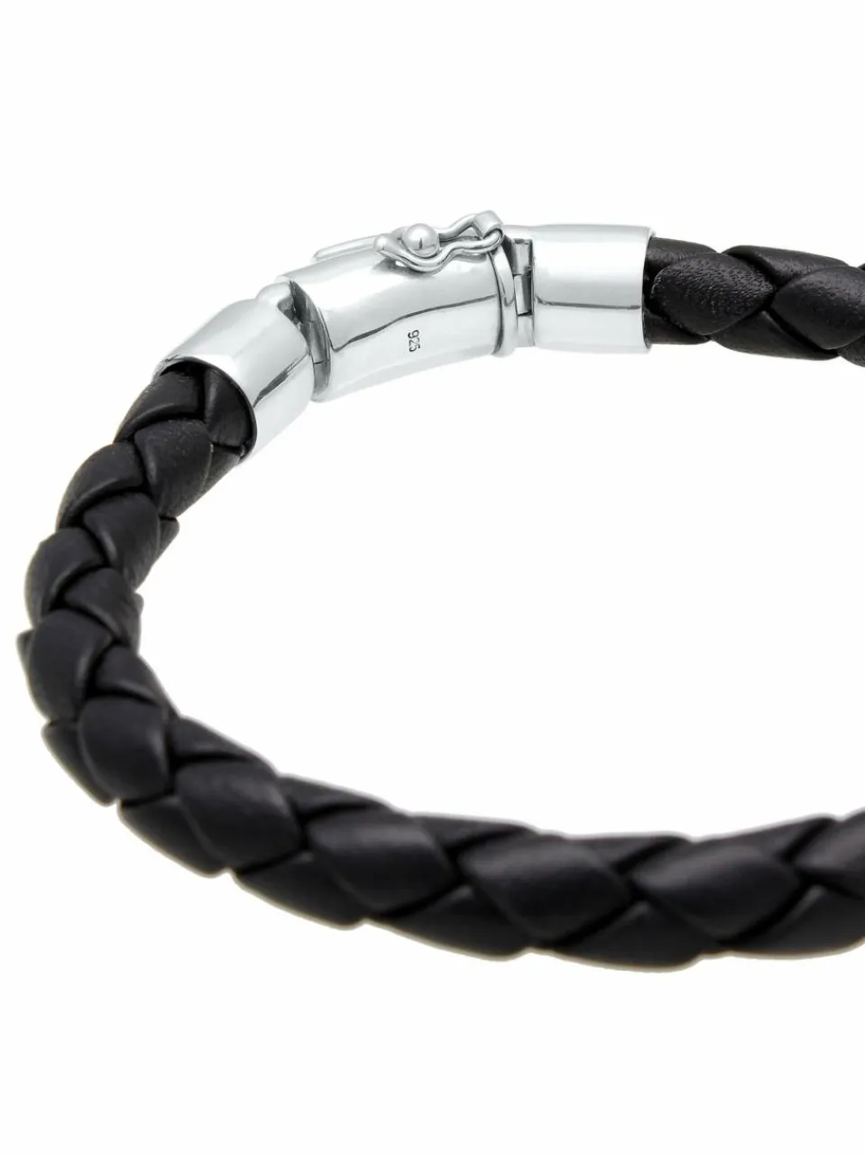 Hochwertiges Kuzzoi Herren-Lederarmband aus geflochtenem Leder von Hand gefertigt in schwarz, mit wunderschön gearbeiteten Kastenverschluss aus 925 Sterling Silber. Der sorgfältig integrierte Verschluss lässt sich einfach Öffnen und Schließen. Das in rund gearbeitetes Lederarmband in Braided-Optik, passt hervorragend zu sportlich-eleganten Outfits. Da es sich bei Leder um ein Naturprodukt handelt, kann dessen Farbe und Stärke vom Bild abweichen. Jedes Schmuckstück ist daher individuell und bekommt mit der Zeit eine persönliche Patina. Dieses exklusive Schmuckstück wird in einem eleganten Geschenk-Etui geliefert.