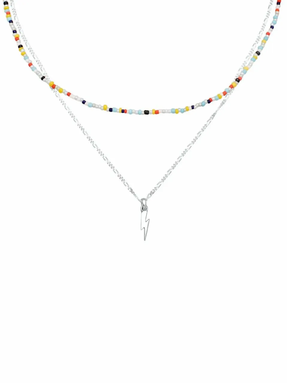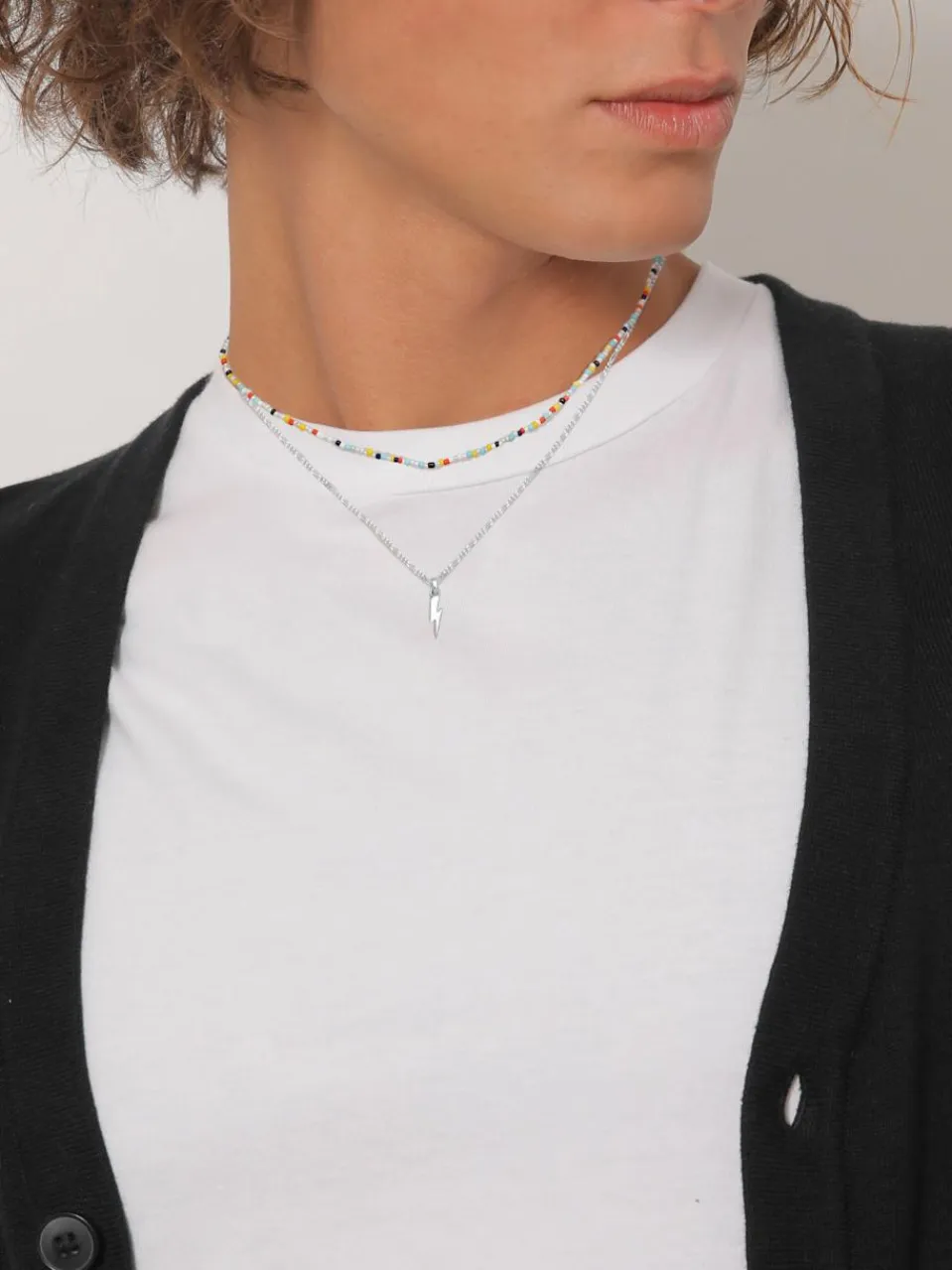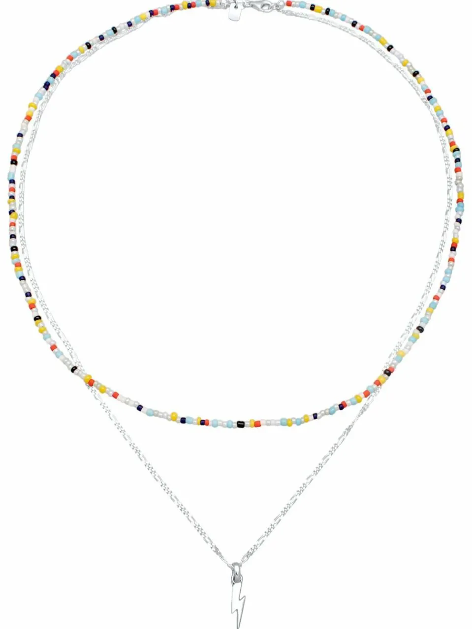 Diese stylische Herren Layer Kette aus hochwertigem 925er Sterling Silber ist mit einem filigranen Blitz Anhänger versehen. Die trendigen Glasbeads verleihen ihr einen modernen und lässigen Look. Egal ob Tag oder Nacht, dieser zweireihige Halsschmuck passt perfekt zu jedem Style.