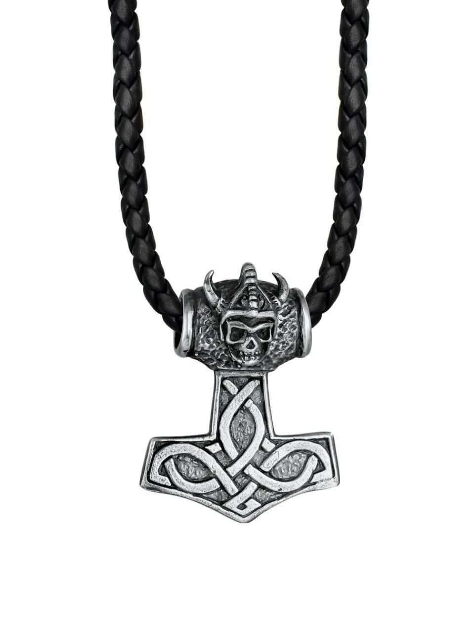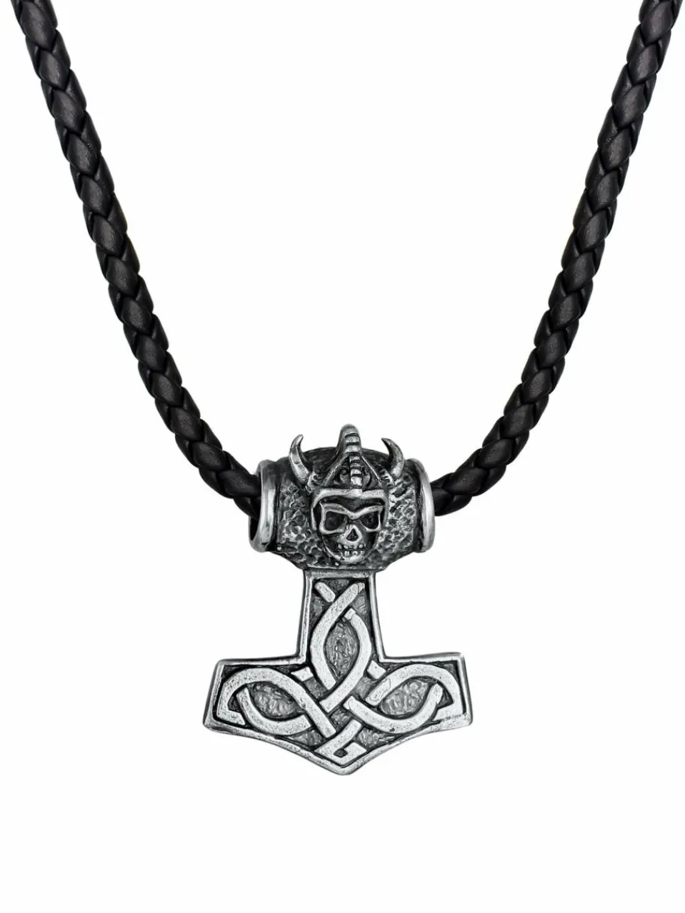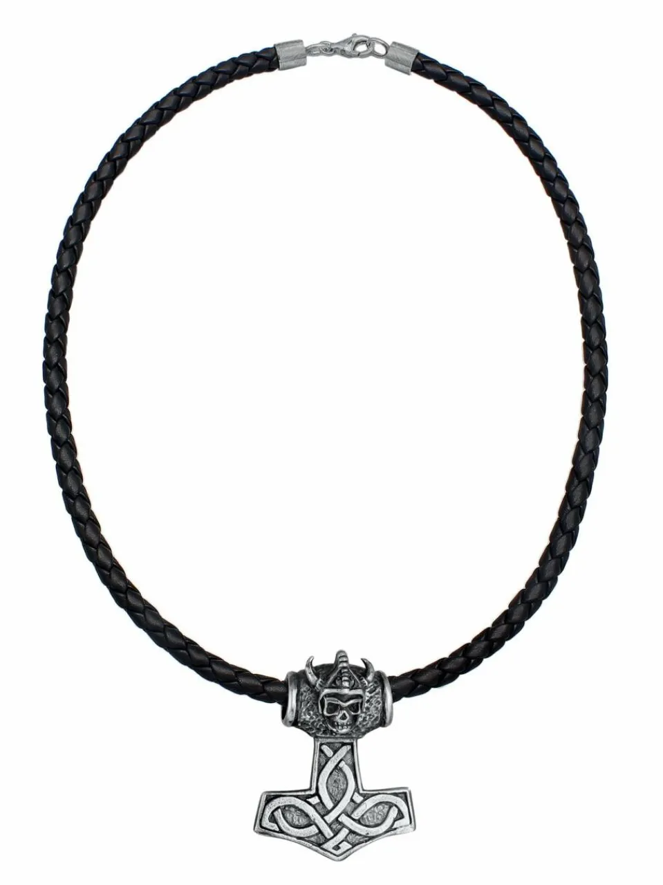 - Herren Lederhalskette geflochten mit Thors Hammer