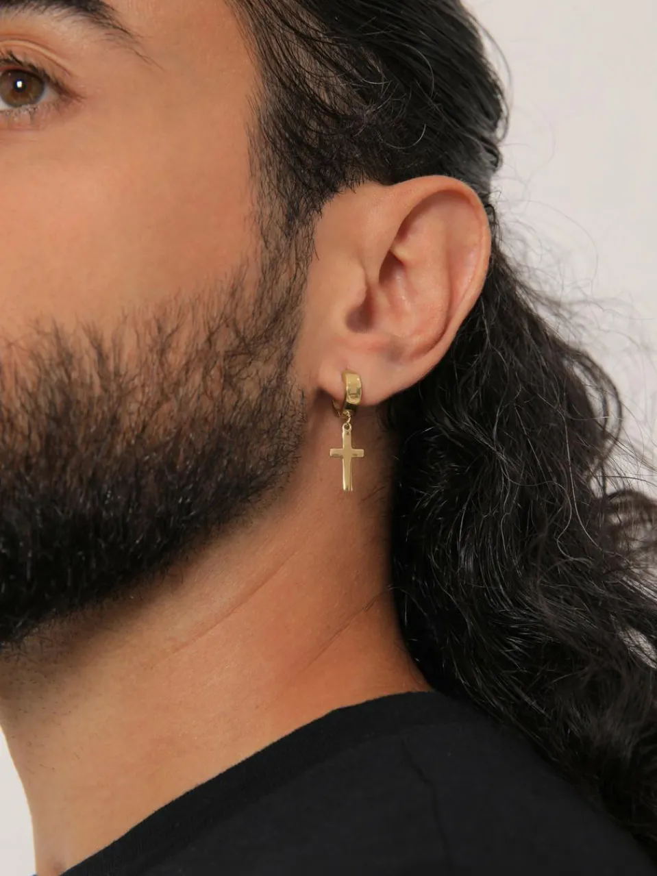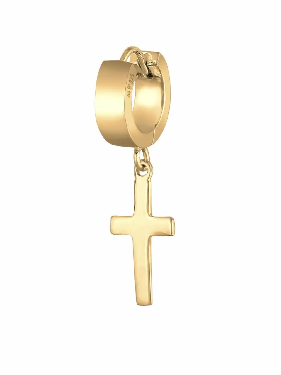 Die modische Scharnier Creole für Herren aus massivem 925er Sterling Silber, besticht durch ihr schlichtes Design. Das filigrane Glaubenssymbol in Kreuz Form ist ein ganz besonderer Hingucker. Ein trendbewusstes Accessoire für den modebewussten Mann.