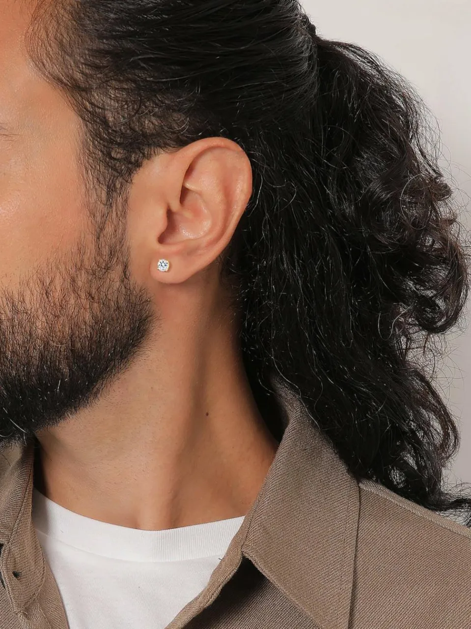 Im modern und zeitlos runden Design, strahlen dieses Ohrstecker am Ohrläppchen des Mannes. Schlicht, aber dennoch edel funkelt ein runder Kristall aus der klassischen Krappenfassung. Egal ob in der Freizeit oder am Abend, diese Herren Ohrringe passen einfach zu jedem Style. Ein Must-Have für alle modebewussten Männer!