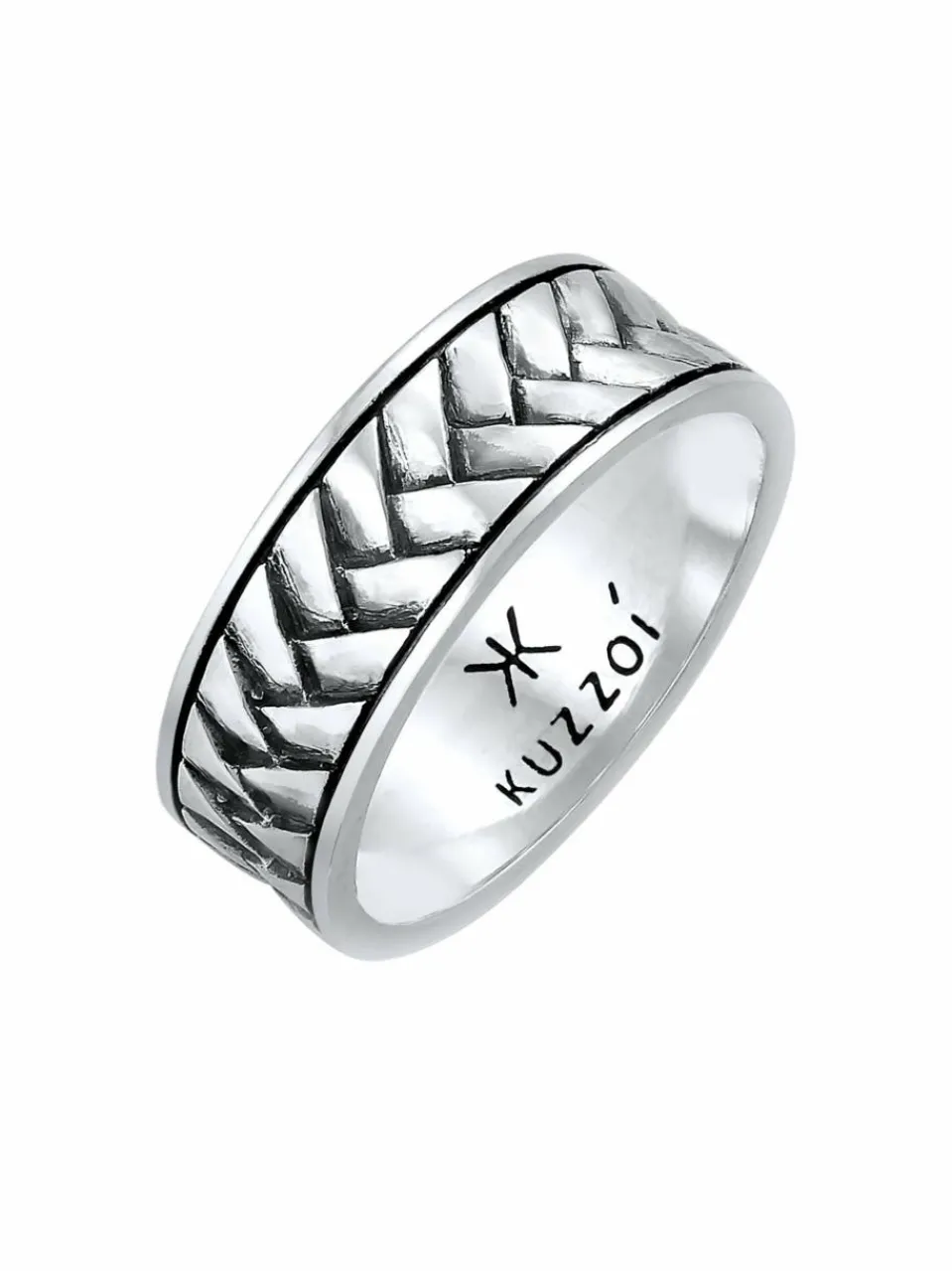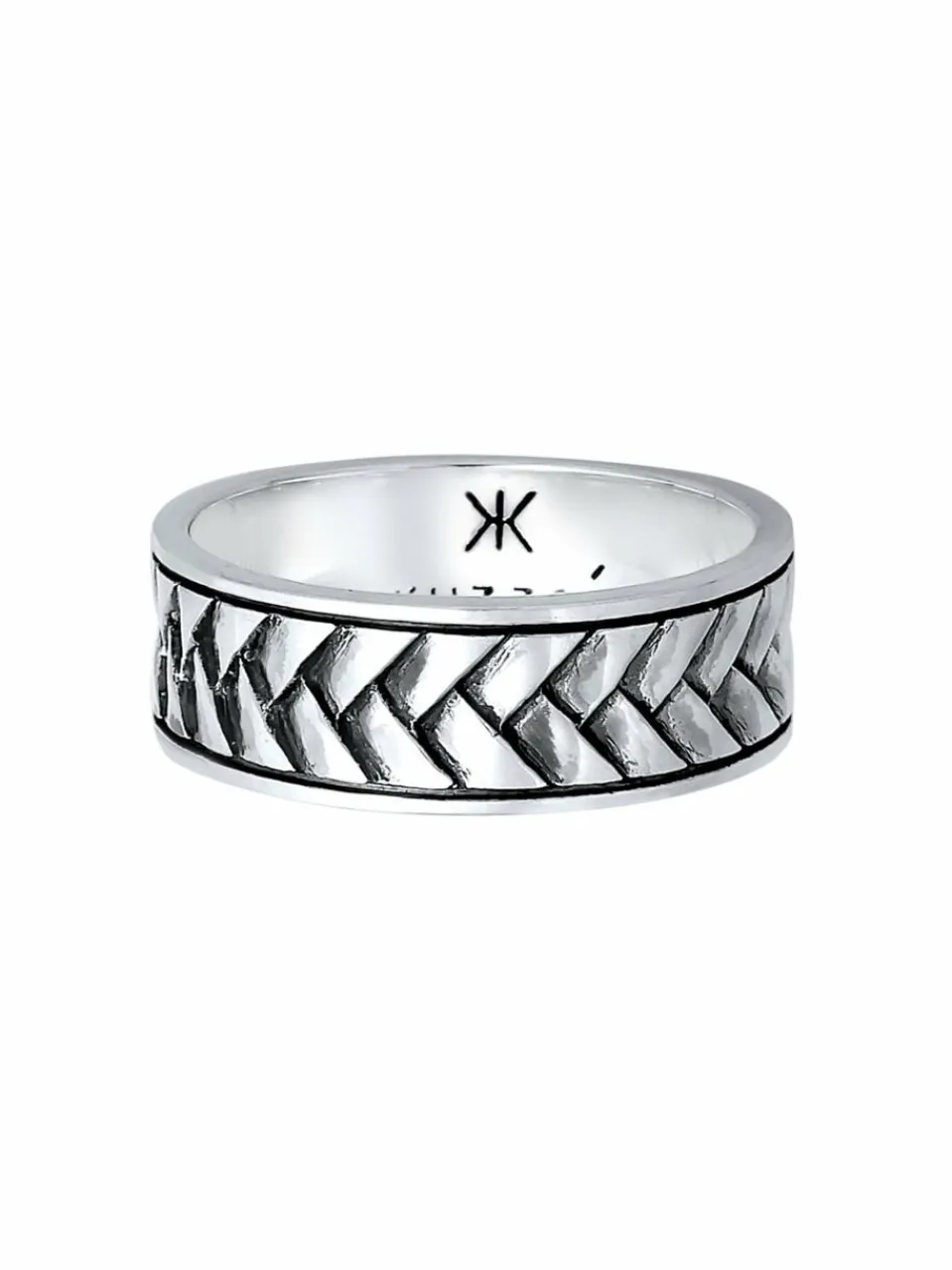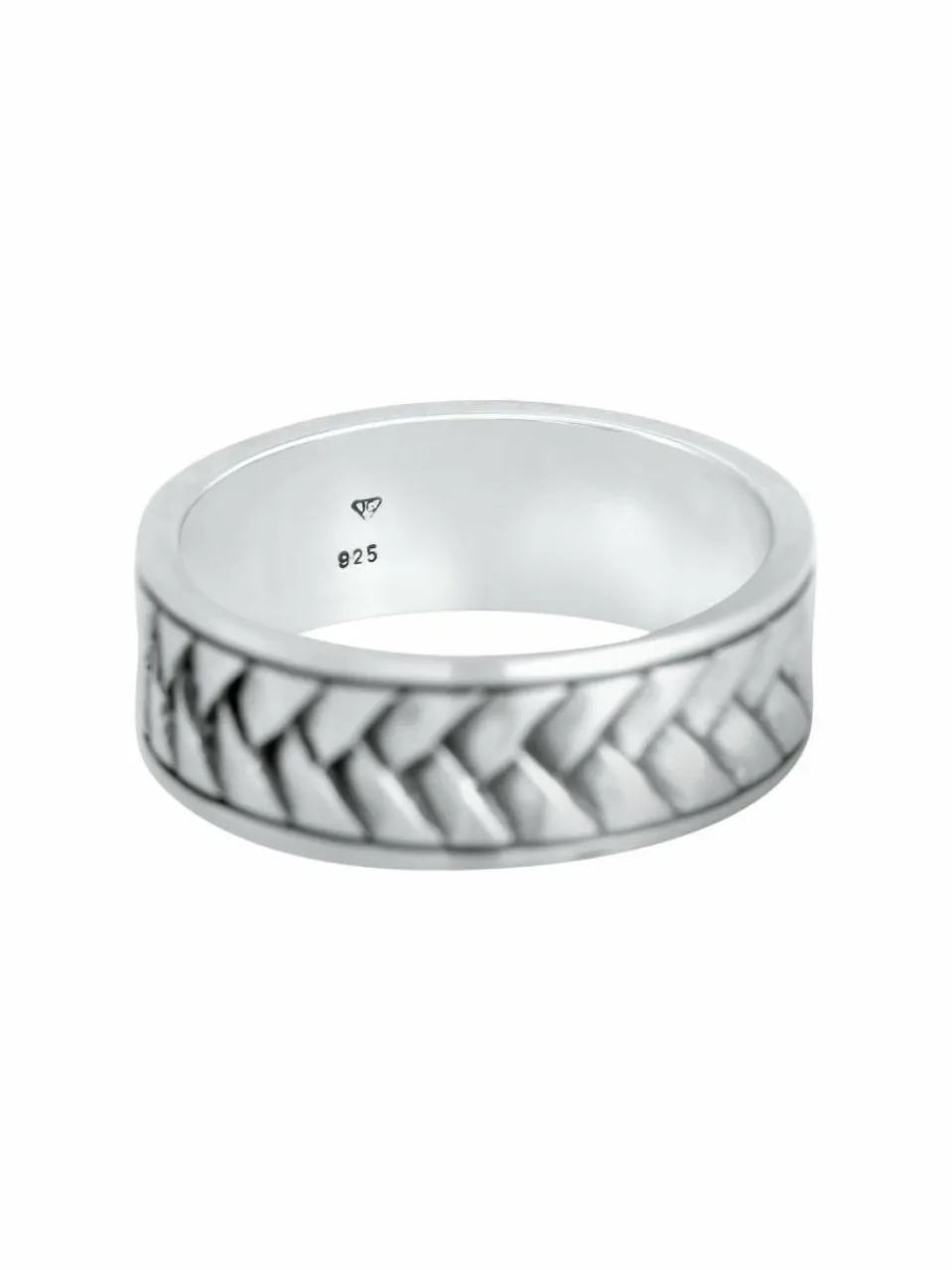 Dieser massive Herren Ring, unterstreicht den lässig legeren Look. Der geradlinig geformte Bandring ist mit einer Struktur die einer Fischgräte ähnelt verziert. Die teilweise geschwärzte Oberfläche setzt gezielt Akzente. Ein markantes Schmuckstück im als täglicher Begleiter, das den persönlichen Look eines Mannes optimal unterstreicht.