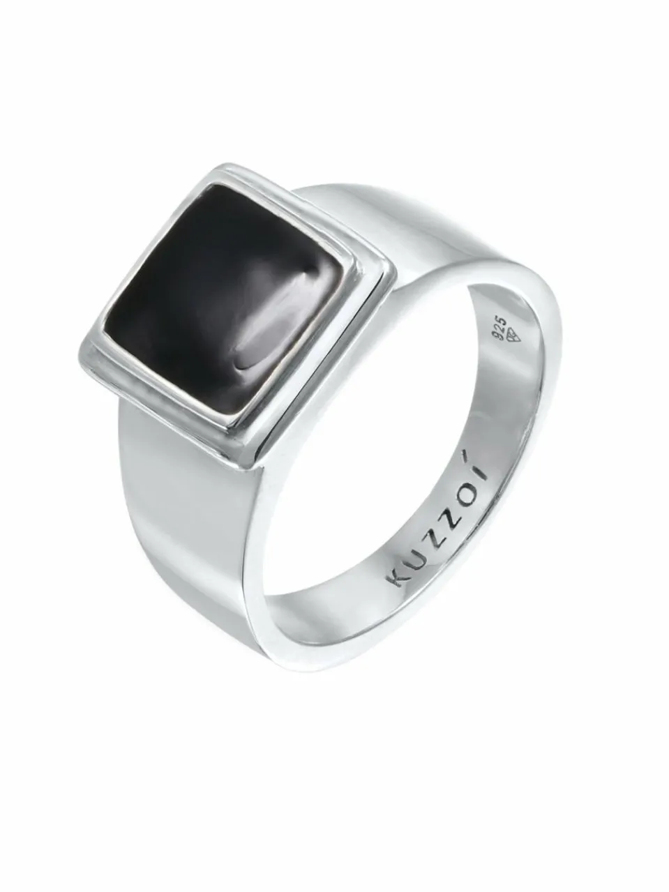 Dieser auffallend, elegante Siegelring für den Mann, ist ein Blickfang. Ein Herren-Accessoire das sich durch seine quadratische Oberfläche mit Emaille Details auszeichnet. Durch sein kantiges Design ist dieser Herrenring ein absoluter Trendsetter, der jede Herrenhand kunstvoll schmückt.Dieses exklusive Schmuckstück wird in einem eleganten Geschenk-Etui geliefert.