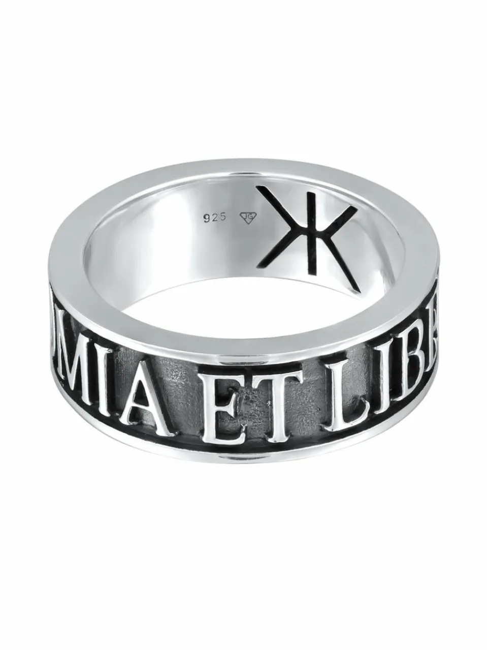 Unsere trendstarker Herrenring aus massivem 925er Sterling Silber ist ein kraftvoller Blickfang an jedem Finger eines Mannes. Das herausragende Merkmal sind die eingravierten Worte