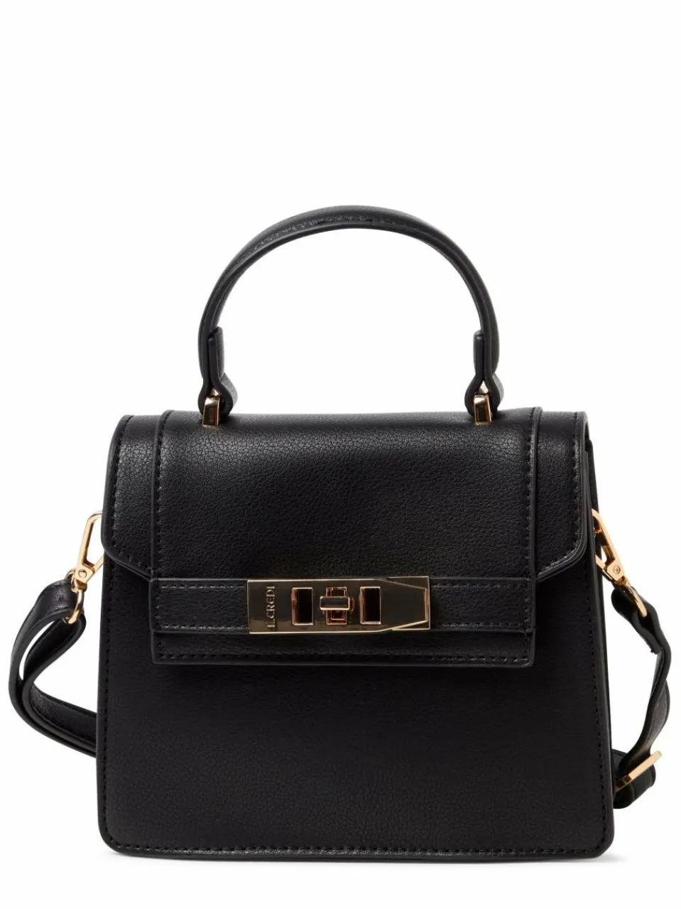 Die Umhängetasche Konstanze von L.Credi aus veganem Material besticht durch einen markanten Tragehenkel und stilvolles Design.