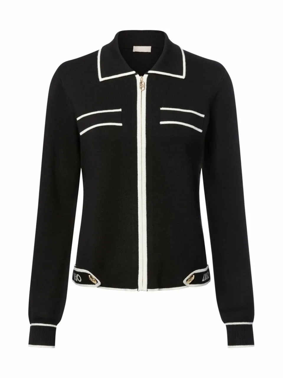 Die Strickjacke Maglia Zippata aus der Liu Jo Collection besticht durch einen edlen Viskose-Mix mit Seidenanteil, eine angenehme Haptik sowie elegant-sportive Details wie Saumriegel, Labeling und goldene Knöpfe.