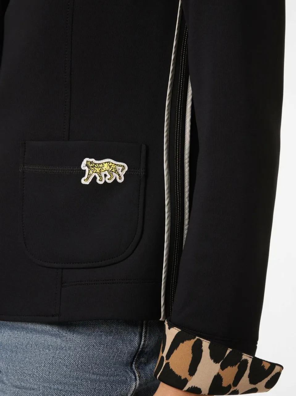 - 2 aufgesetzte Taschen mit Leoparden-Patch