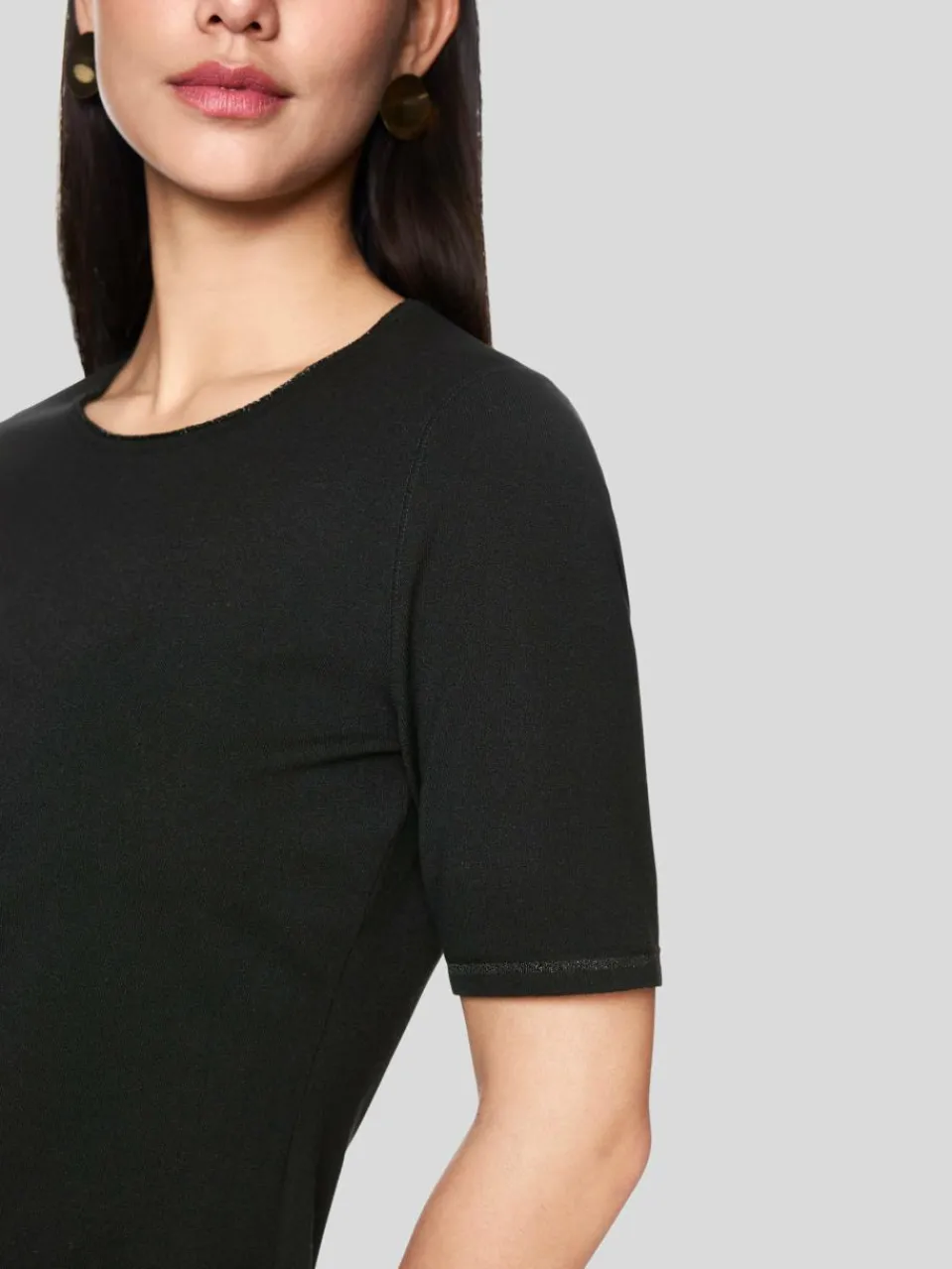 Kennzeichen bei diesem Sweater ist der halblange Arm. Das Oberteil kommt mit weitem Rundhalsausschnitt und zeigt eine taillierte Silhouette. Das Modell aus einer soften Materialmischung mit Viskose ist „Knitted in Germany“: Das Verstricken der Garne auf hochmodernen Strickmaschinen und die Veredelung der Stoffe geschehen am Standort Deutschland. Zusammengenäht werden die einzelnen Teile wie Ärmel, Vorderteil etc. in europäischen Partnerbetrieben.