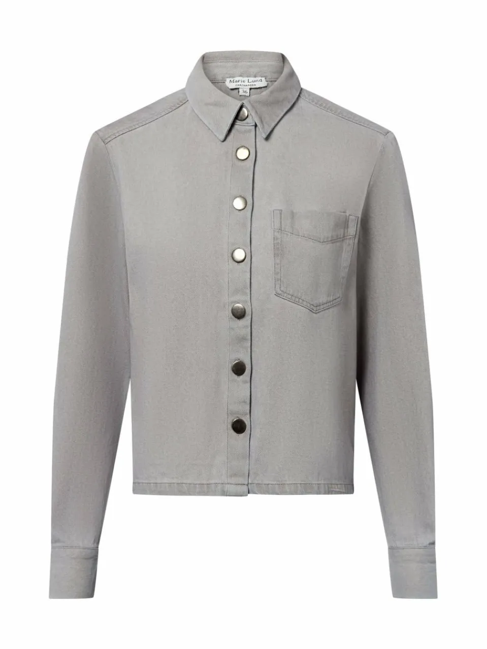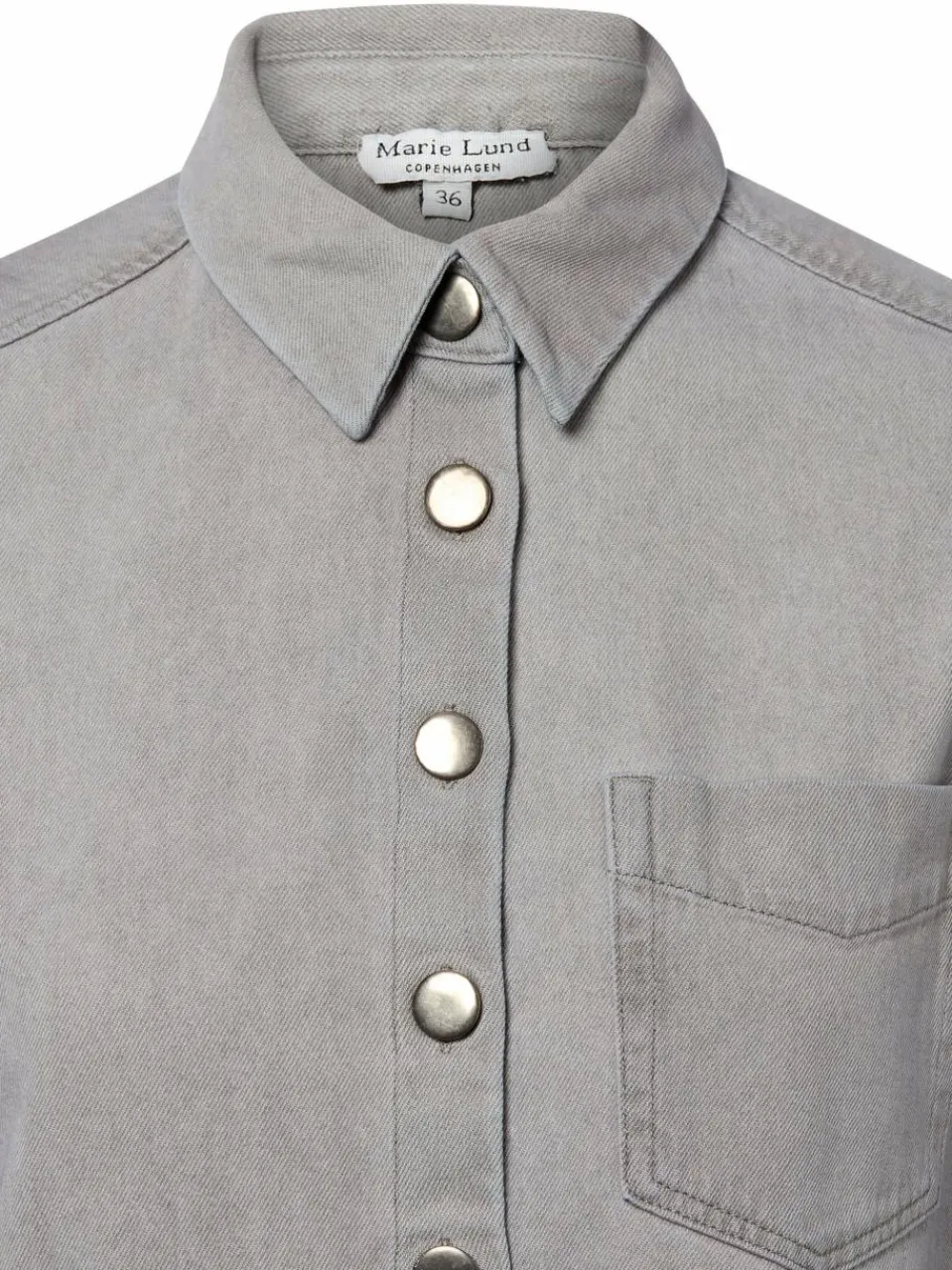 Die boxy Jeansbluse Birgit von Marie Lund erweist sich sowohl offen als auch geschlossen getragen als lässiges Styling Piece für die Freizeitgarderobe.