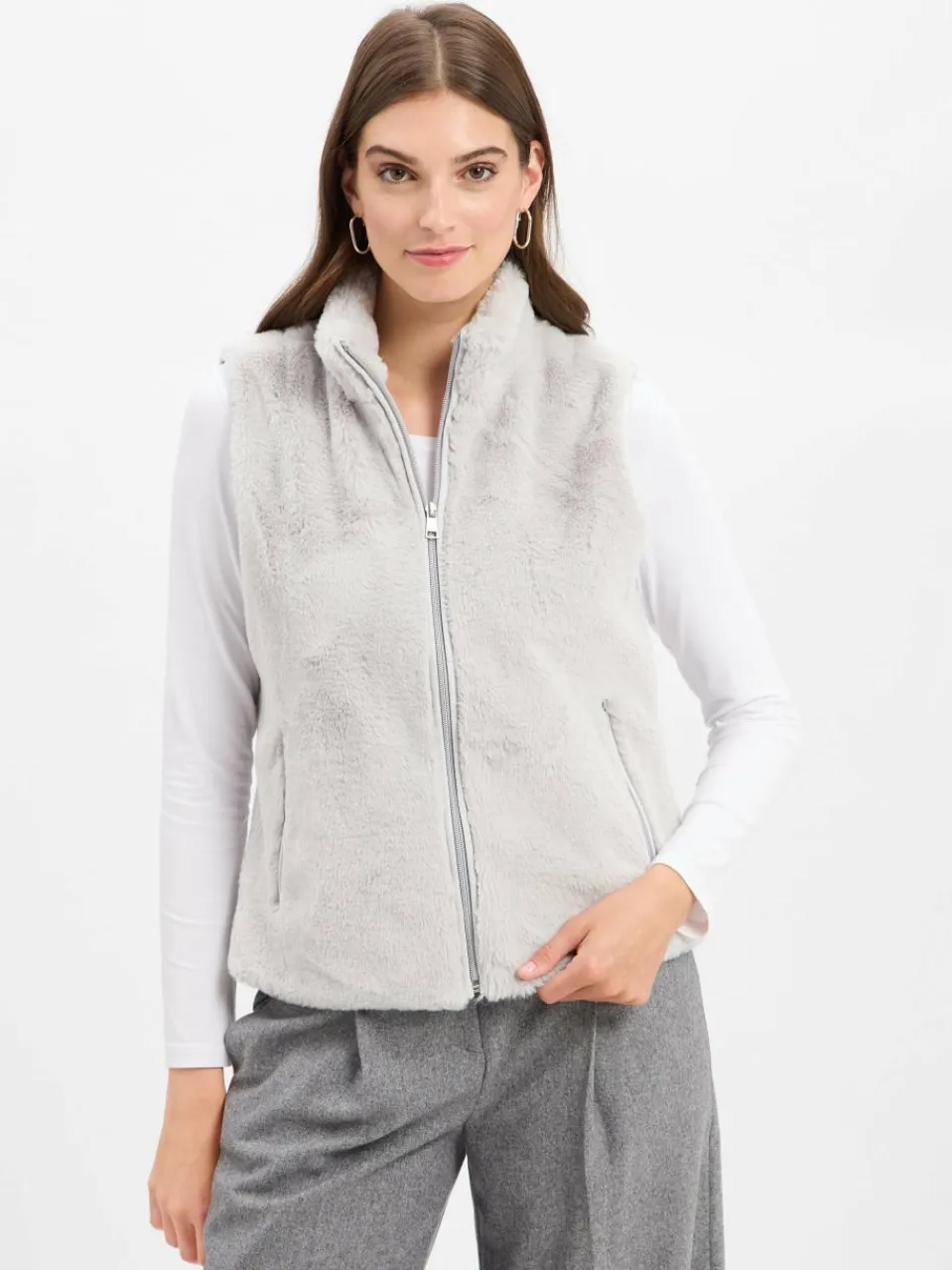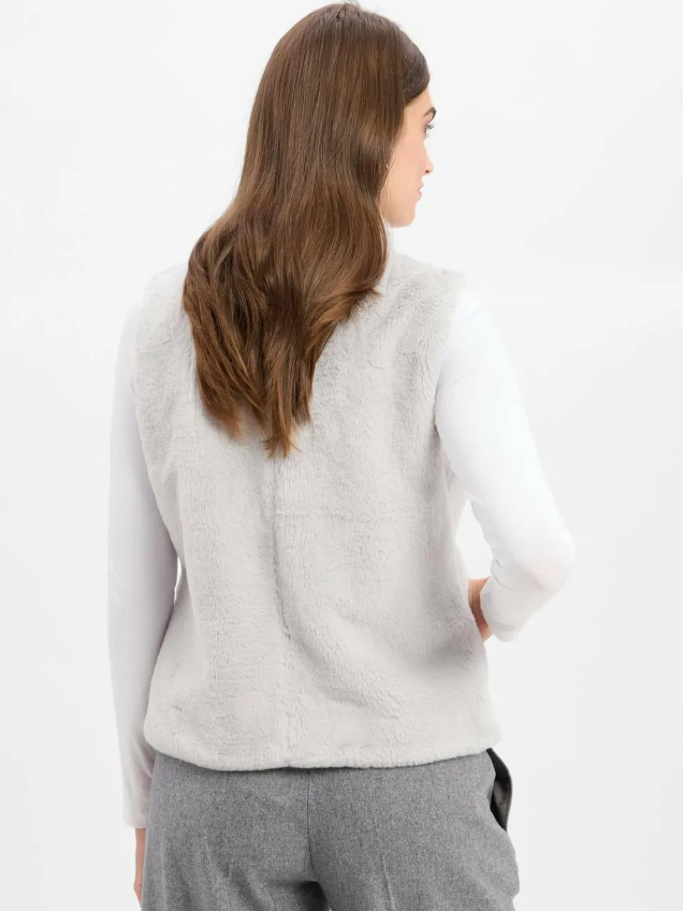 Gibt jedem Look eine trendige Note und ist perfekt für die Übergangszeit: die Marie Lund Weste aus kuscheligem Kunstfell mit praktischem Stehkragen.