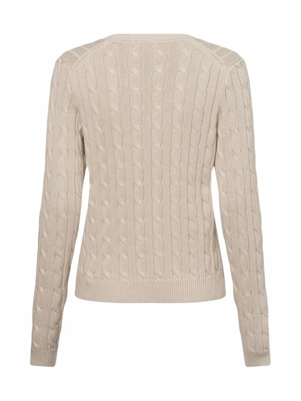 Der grobe Strickpullover von Marie Lund besticht durch sein klassisches Zopfmuster und den Rundhalsausschnitt. Mit den gerippten Bündchen an den Ärmelabschlüssen und am Saum sorgt er für eine perfekte Passform und angenehmen Tragekomfort.