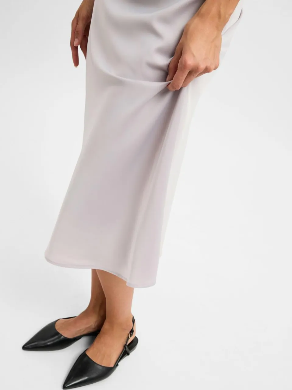 Als Essential für die moderne Garderobe begeistert der A-Linien-Rock von Marie Lund in changierender Satinqualität.