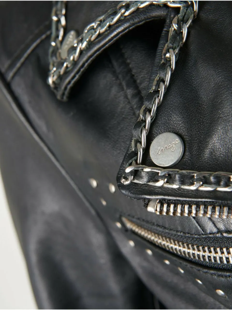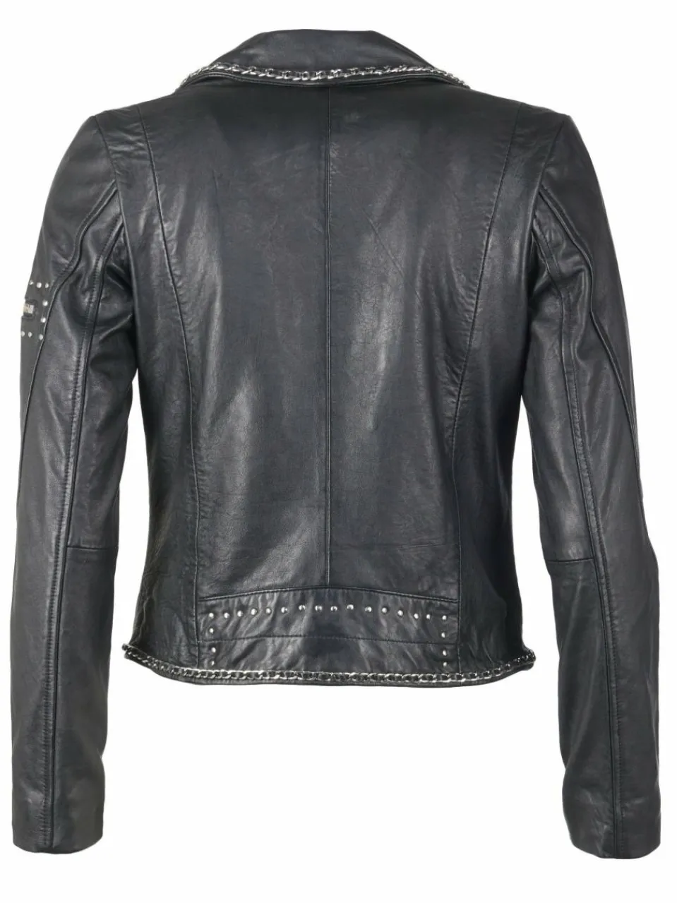 - Schöne Lederjacke mit auffälligen Nieten und Ketten