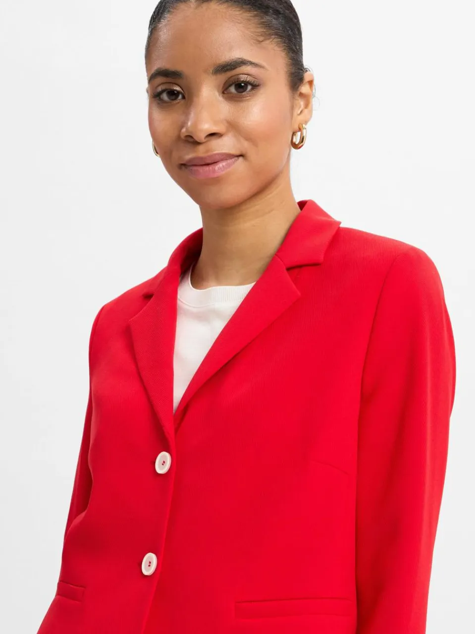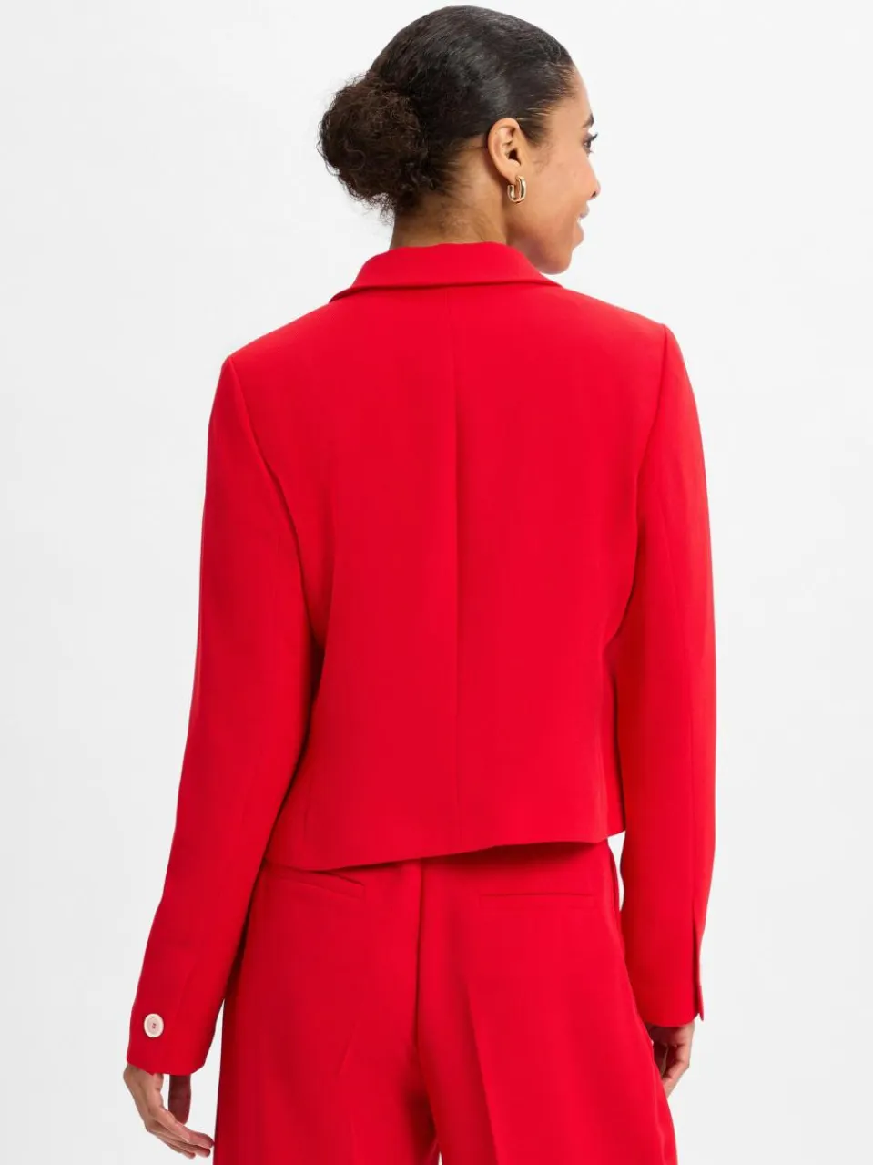 Der kurze Blazer von More & More aus fließender Twill-Struktur vereint Eleganz und Lässigkeit, während kontrastierende Knöpfe ihm einen stilvollen Akzent verleihen – ein zeitloses Must-have für moderne Business-Looks. Der Blazer ist Teil eines Baukasten-Anzugs, kann aber auch allein getragen werden.