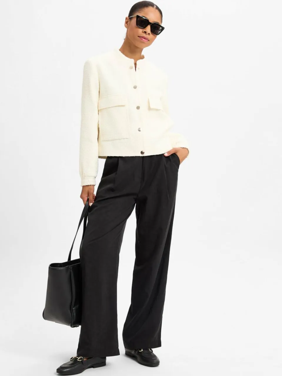 Der Blazer von More & More in stilvoller Bouclé-Optik ist perfekt für das Büro und sieht auch in der Freizeit super aus.