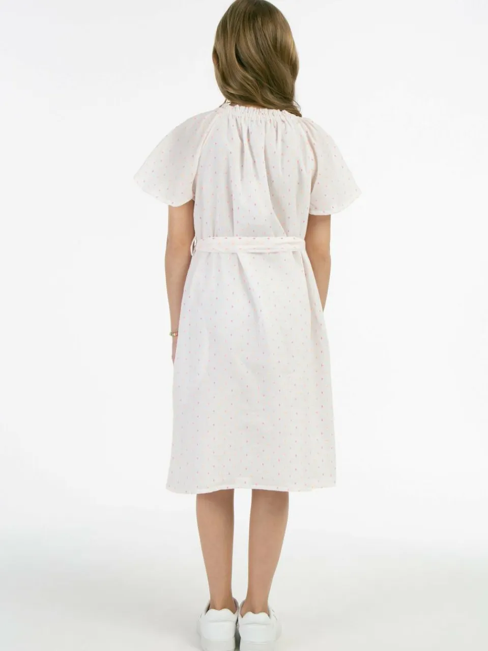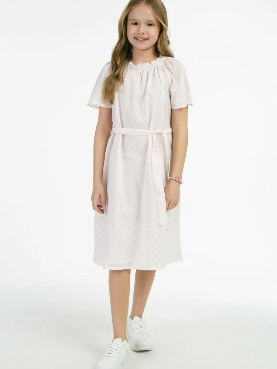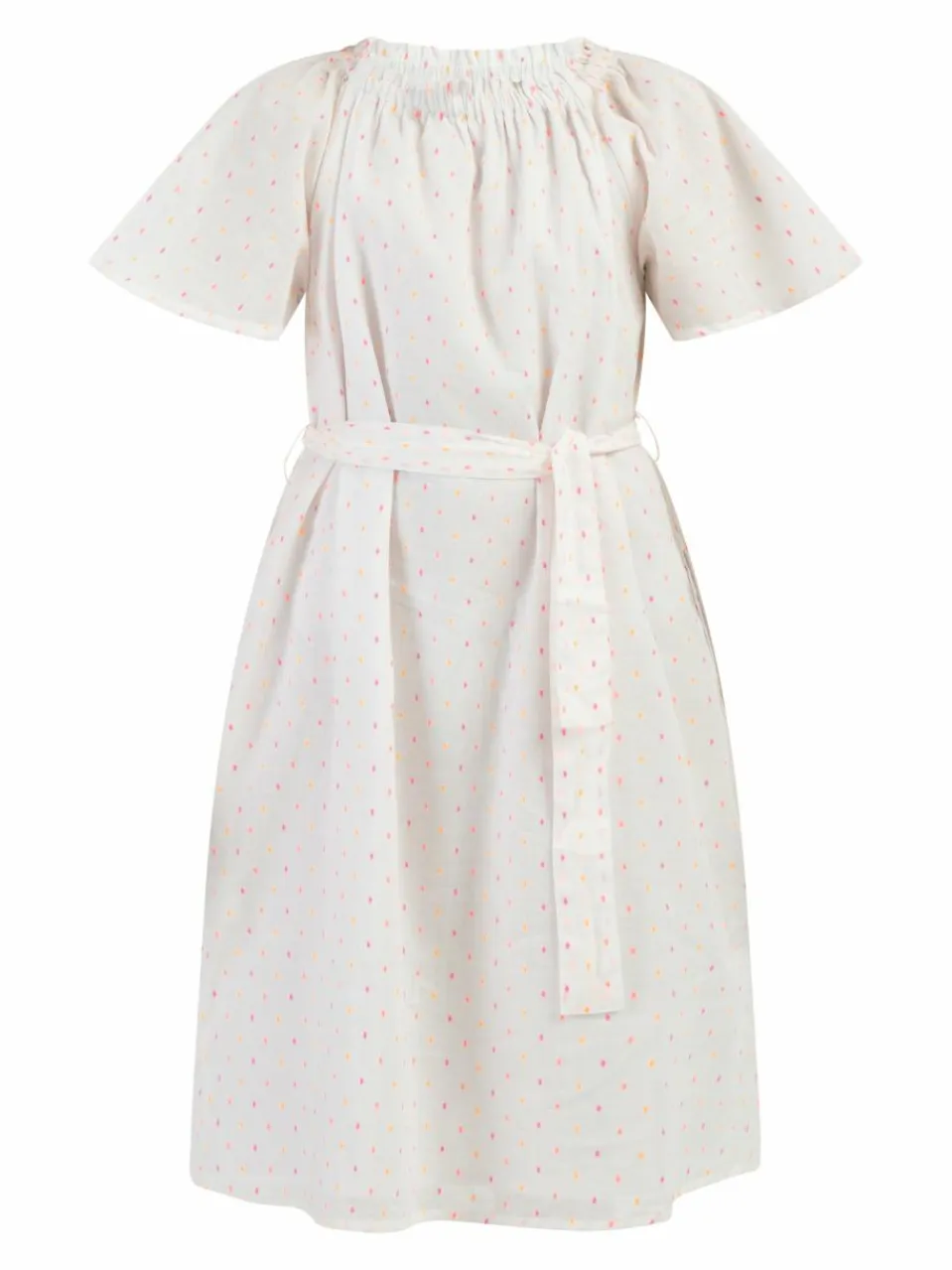 Dieses luftige Sommerkleid von myMo KIDS wird schnell zum Favoriten aller Mädchengarderoben, denn die zarten pastellfarbenen Pünktchen setzten zauberhafte Akzente. Gefertigt aus einem leichten Baumwollgemisch ist es zudem locker geschnitten, hat einen raffinierten gesmokten Ausschnitt, weite Flügelärmel und einen materialgleichen Gürtel. Zwei seitliche Eingrifftaschen runden das hübsche Modell gekonnt ab.