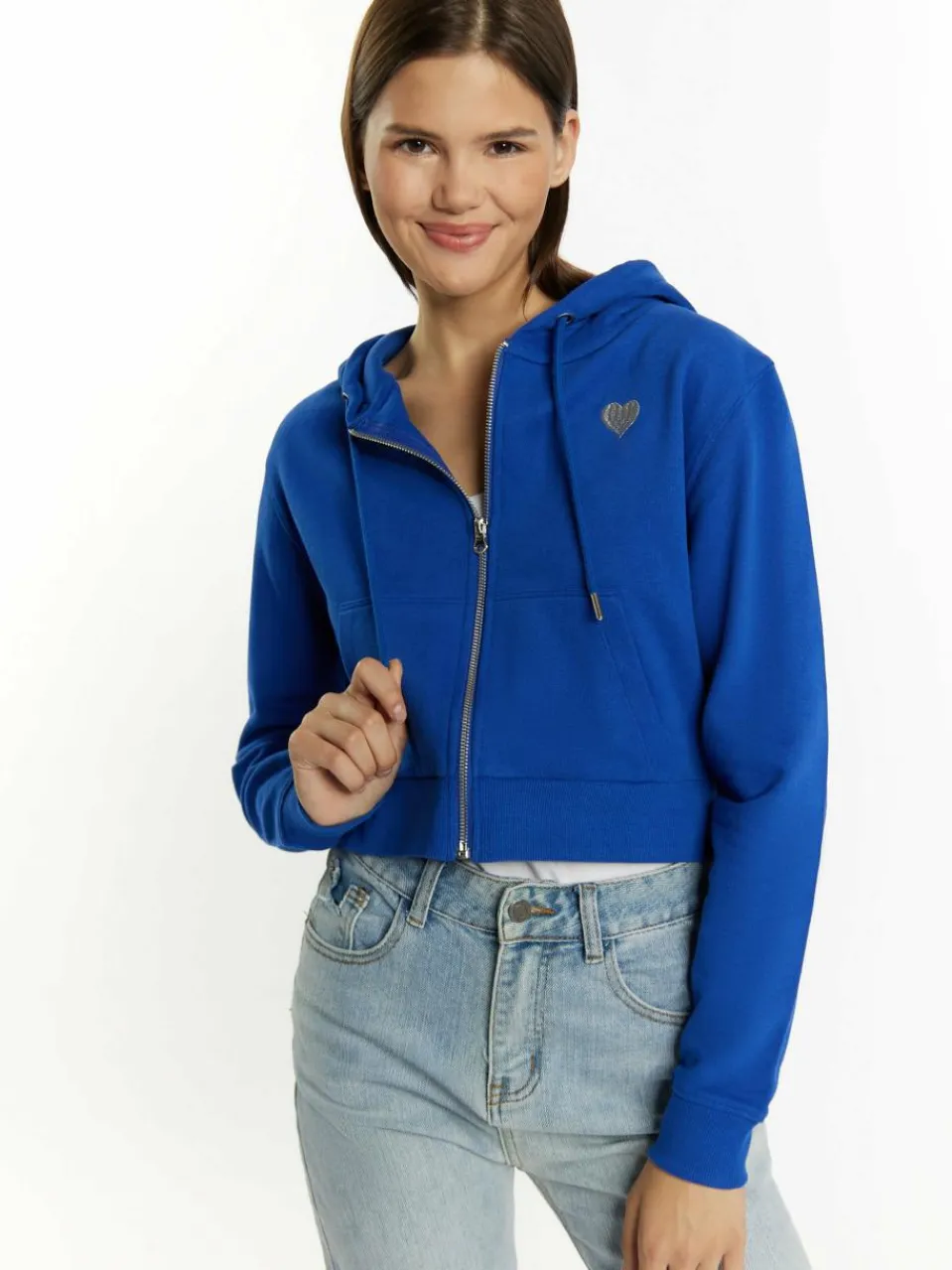 MyMo Sweatshirts & Sweatjacken<Damen Zip Hoodie cropped blau uni