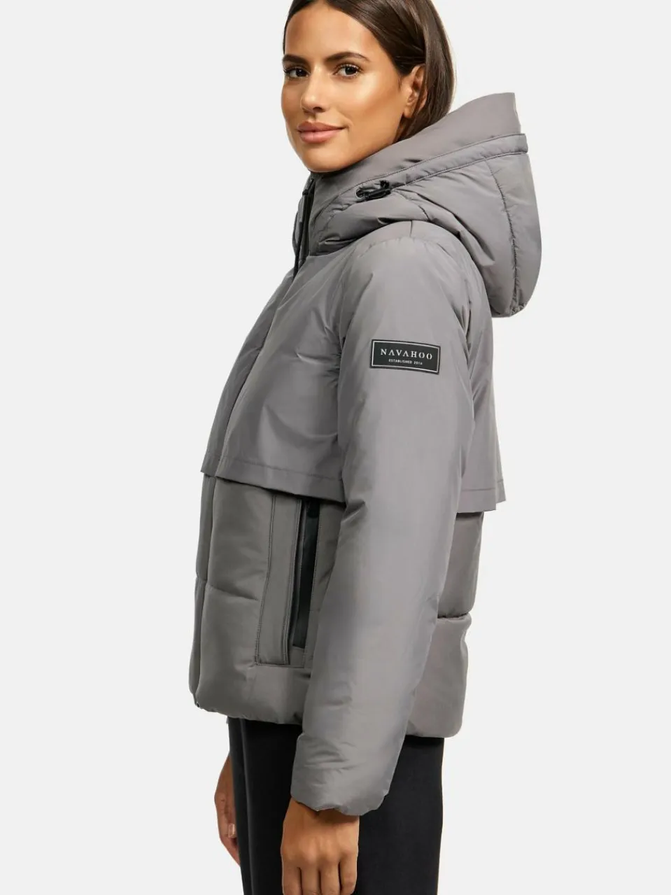 - Modische Damen Steppjacke mit kontrastfarbenen Elementen