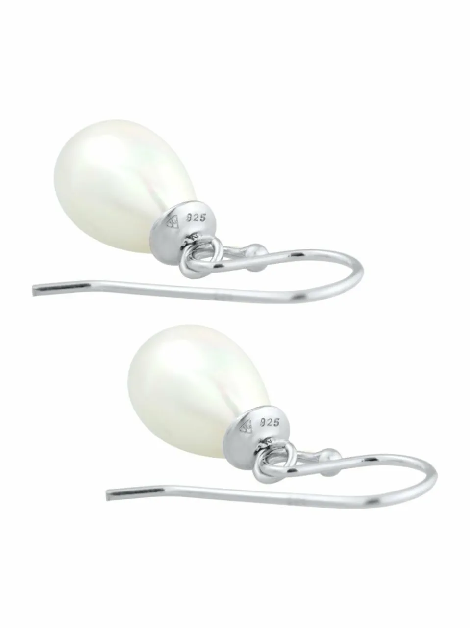 Elegante Perlen-Ohrhänger aus feinstem 925 Sterling Silber mit weißer Muschelkernperle in Tropfenform. Diese schimmernden Brisur Ohrringe sind ein Klassiker mit wunderbarem Glanz. Das ideale Geschenk für einen ganz besonderen Menschen!