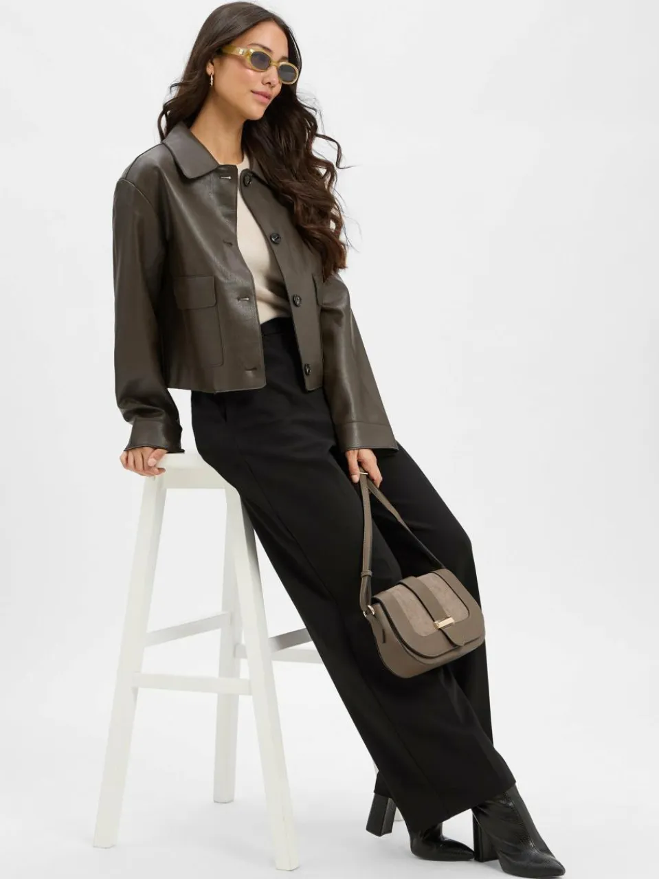 Die Damenjacke Romana Faux von Neo Noir aus Kunstleder im Boxy Fit-Style ist ein lässig-leichter zeitloser Begleiter.