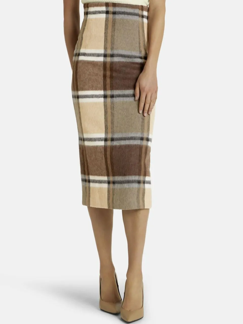 Der perfekte Begleiter zu herbstlichen Overlay Looks- der Bleistiftrock LANOWA von NICOWA! Das dunkelbraune Check-Design mit Wollanteil wurde in Italien gefertigt und besitzt einen klassischen mittellangen Schnitt samt hoher Taille.