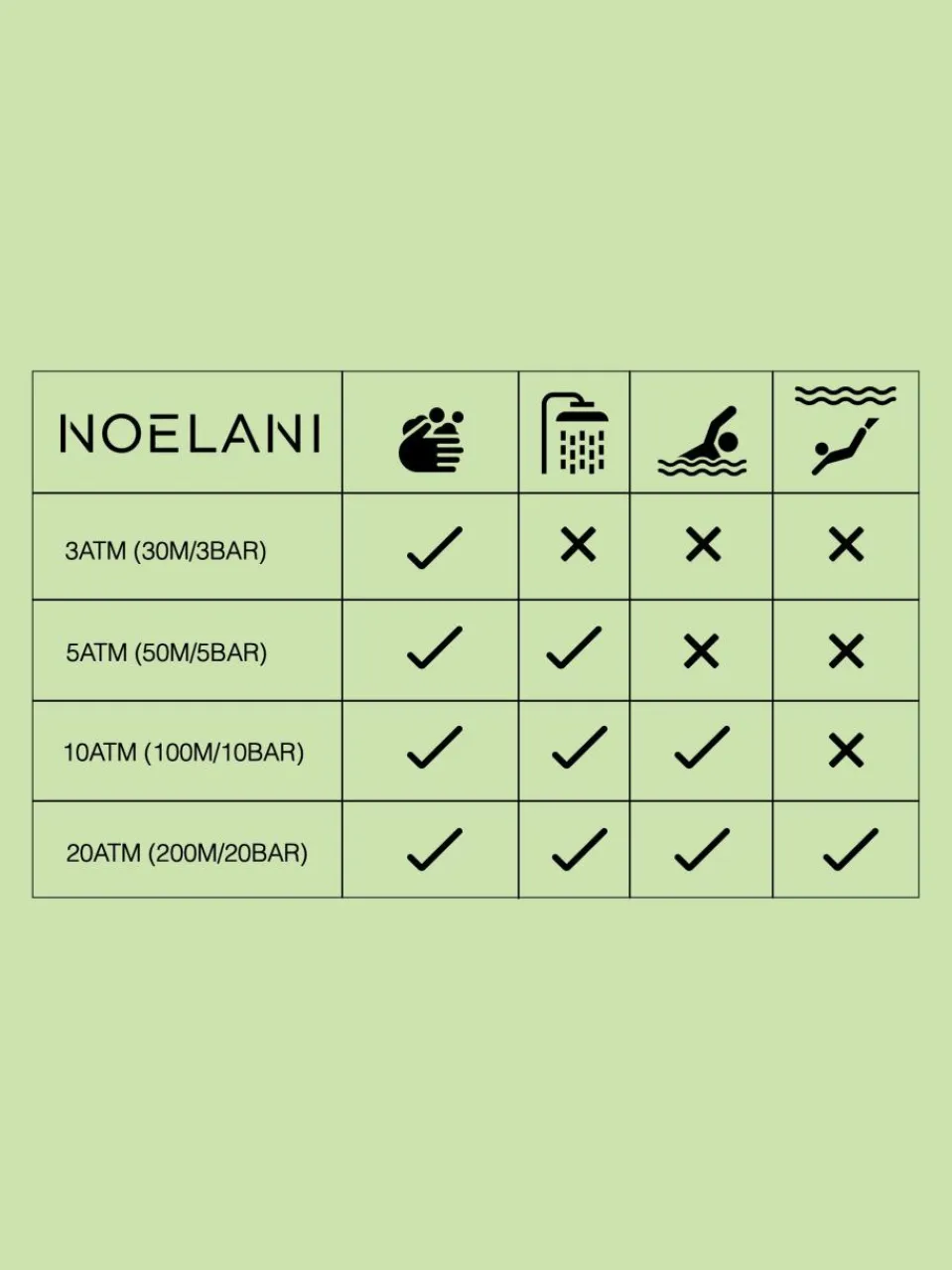 - NOELANI Uhren sind bis 3 Bar wasserdicht