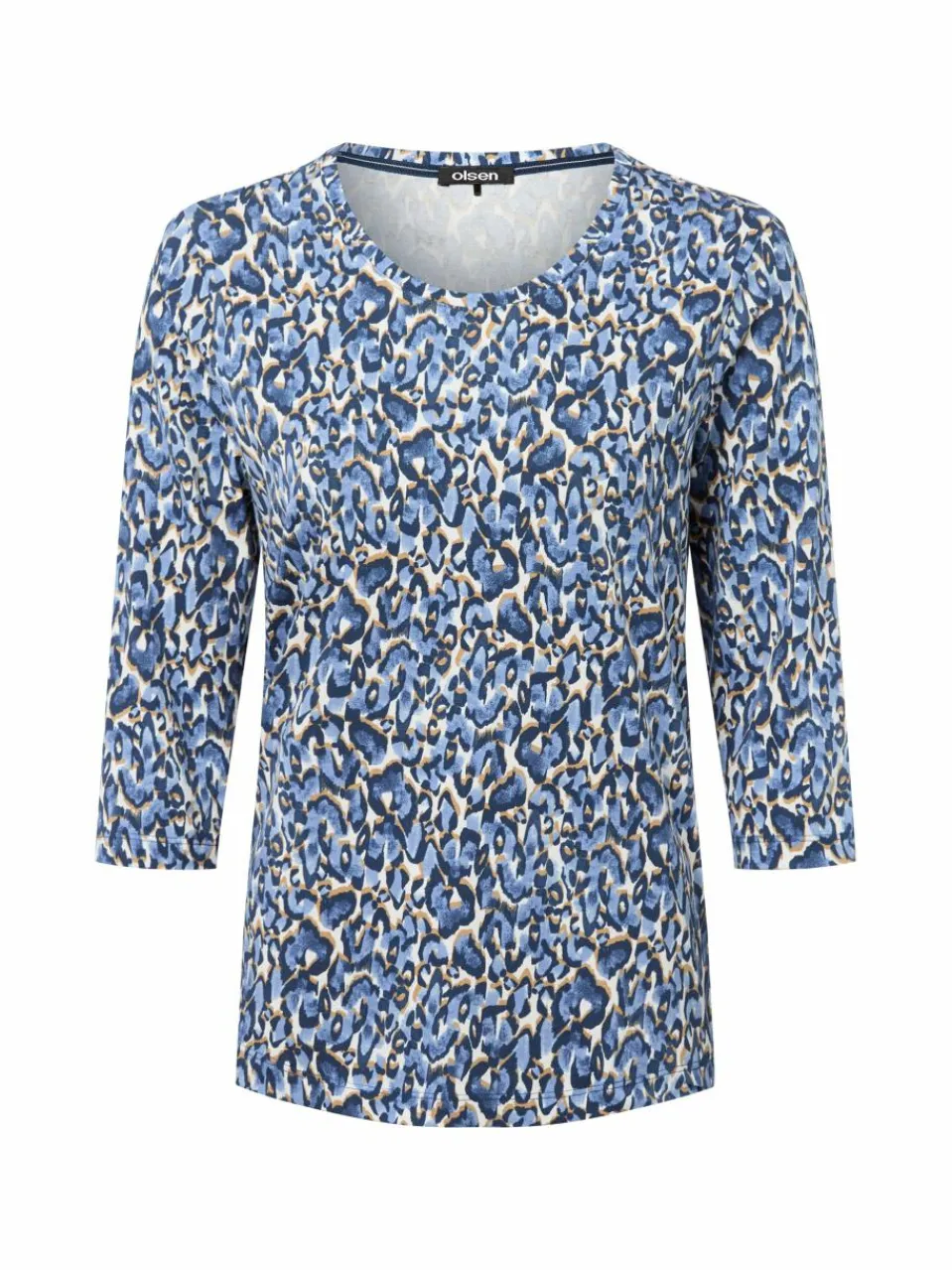Das moderne Leomuster zeichnet das Olsen Langarmshirt Hannah aus – klassisch ergänzt durch Dreiviertelärmel und den Rundhalsausschnitt.
