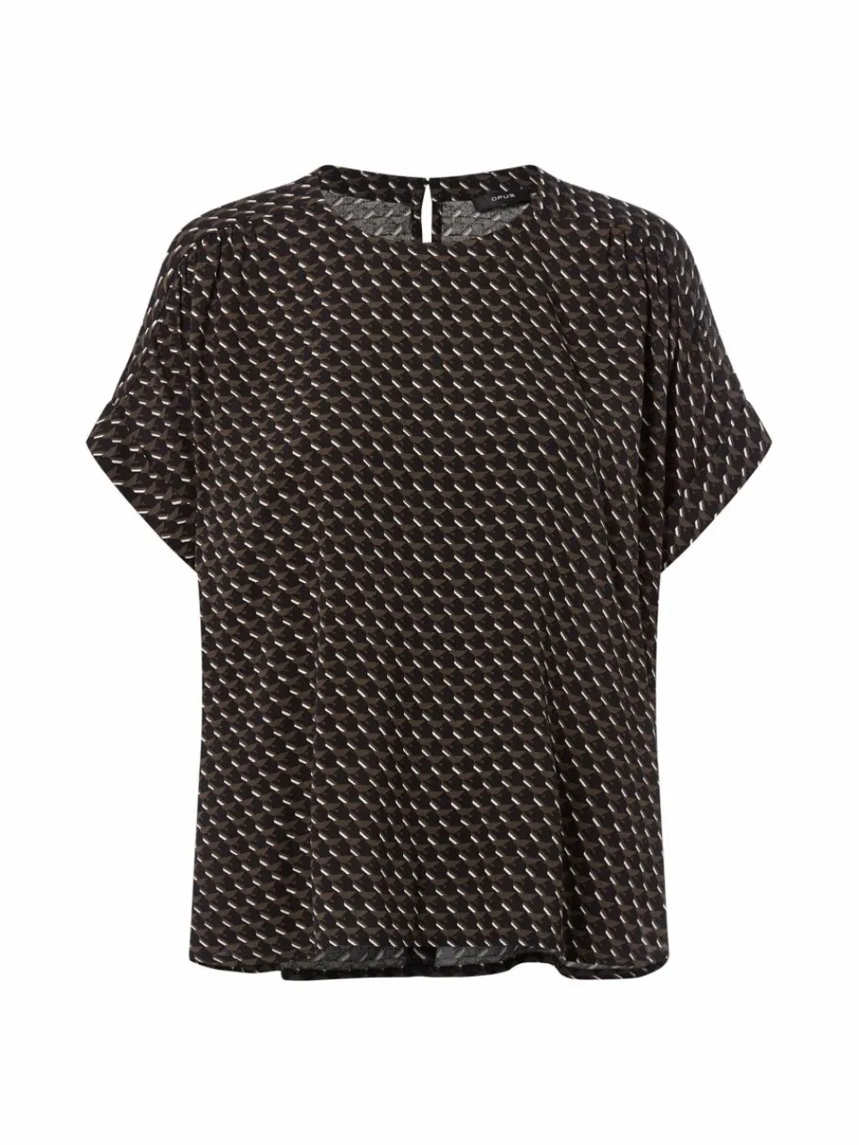 Das Blusenshirt Femka london von Opus fällt locker-luftig durch die leichte Viskose-Qualität, während feine Details wie der Schlüssellochausschnitt den Stil ergänzen.
