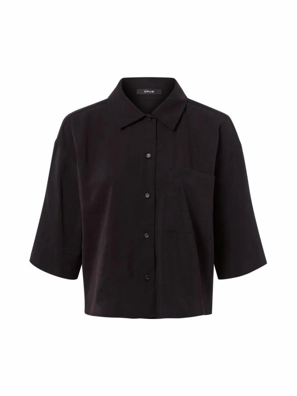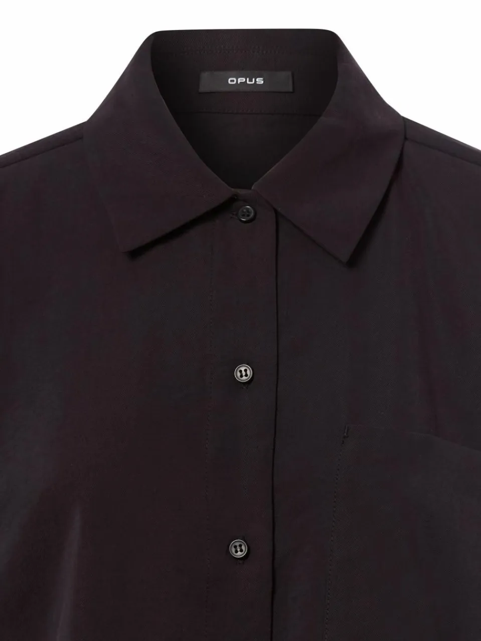 Als stilvolles Kombi-Item besticht die Hemdbluse Fabbey von Opus aus angenehmer Kunstfaser mit raffinierten Falten-Details am rückseitigen Saum.