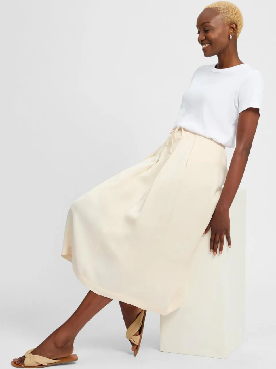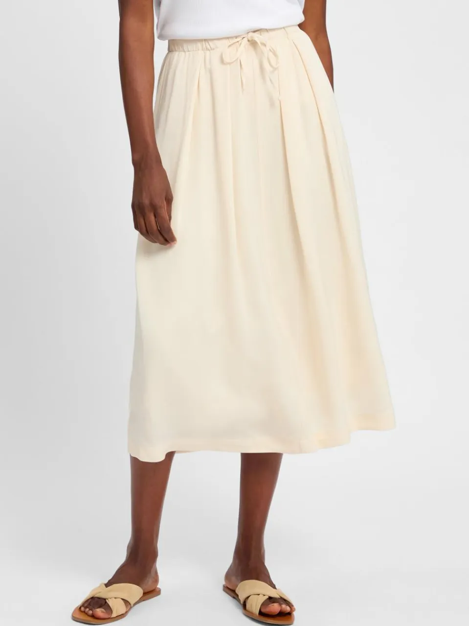 Der Opus Midirock Ronna fällt schön fließend, passt sich dank des Gummibundes optimal an und macht mit seinem puristischen Design zahlreiche Looks möglich.