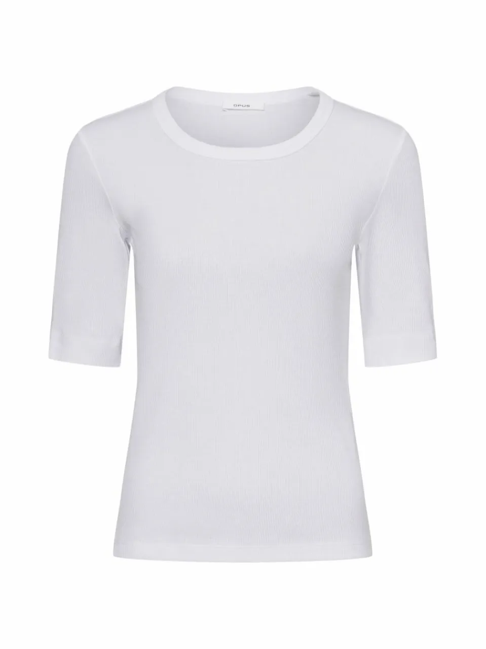 Das T-shirt Sustafa von Opus ist ein lässiges Rippshirt mit schmaler Passform, klassischem Rundhals und angenehm leichtem Material.