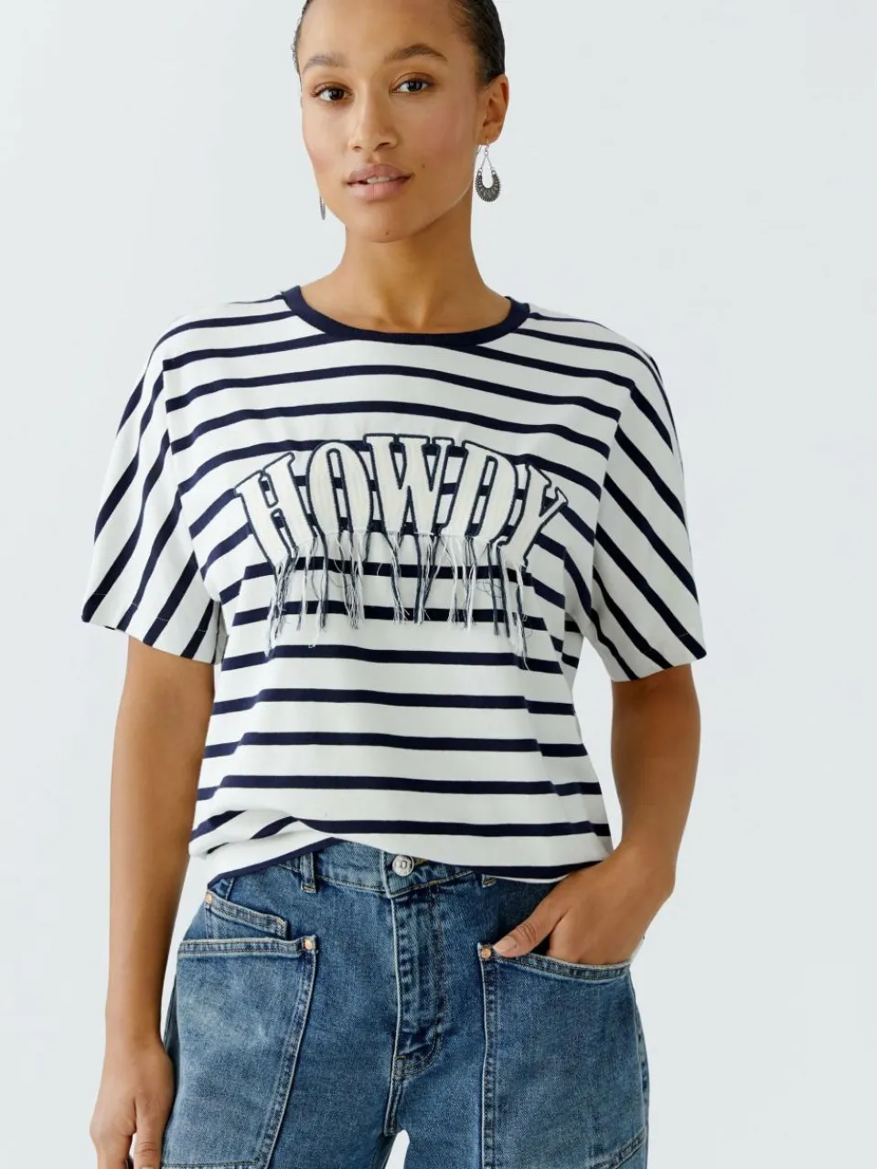 T-Shirt mit aufwendig gearbeitetem HOWDY Stickmotiv mit coolen Fransen