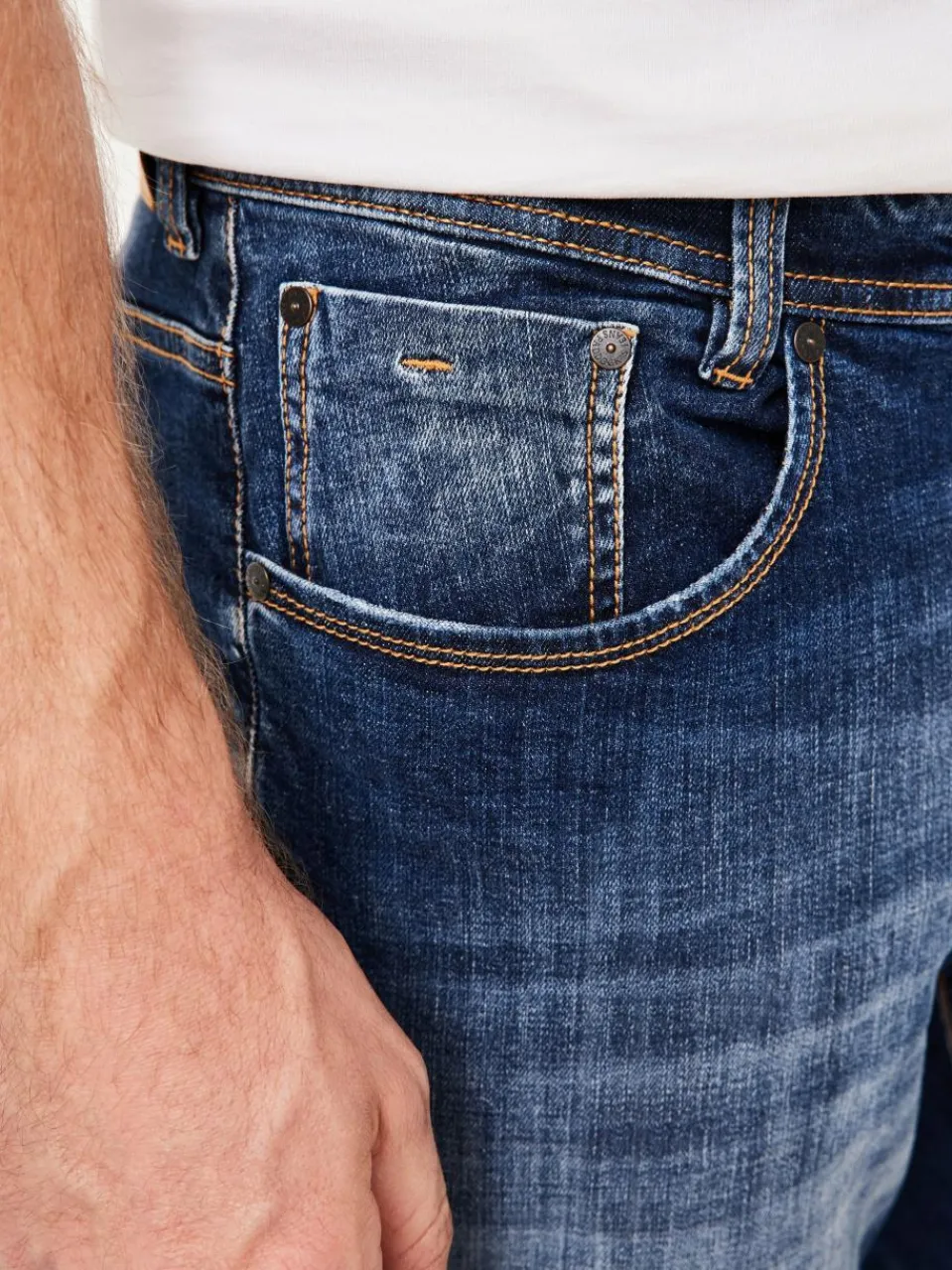 Stilvoll und robust: Unsere Regular Straight Fit Herren Jeans BEN mit Stretch. Die Hose vereintmodernen Style mit zeitloser Langlebigkeit. Die kernige Denim Waschung verleiht dem Stoff eineeinzigartige, authentische Optik, die perfekt mit den auffälligen Nähten harmoniert. Diese Detailssetzen visuelle Akzente und machen die Jeans zu einem echten Highlight in jeder Garderobe. DieBundhöhe ist normal und der Beinverlauf ist gerade mit lockerem Sitz am Oberschenkel.