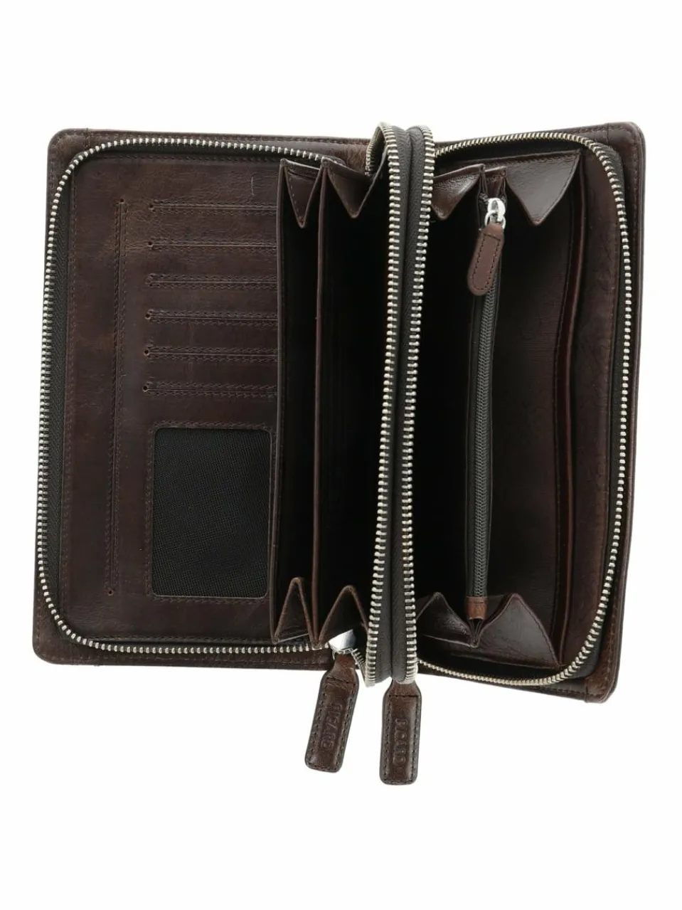 Im maskulinen Look der Buddy-Linie aus geöltem Büffelleder präsentiert sich dieses XXL-Portemonnaie. Zwei große Reißverschluss-Abteile, eine große Zahl übersichtlich angeordneter Fächer für Belege, Dokumente und Geldscheine und sogar das Smartphone hat Platz. Sichere Segmente für EC-Karten sorgen für den optimalen Überblick. Das Münzfach wird durch einen Reißverschluss zusätzlich gesichert. Perfekt für Business-Reisen oder einfach nur, um alle wichtigen Dinge immer zuverlässig zusammen zu haben.