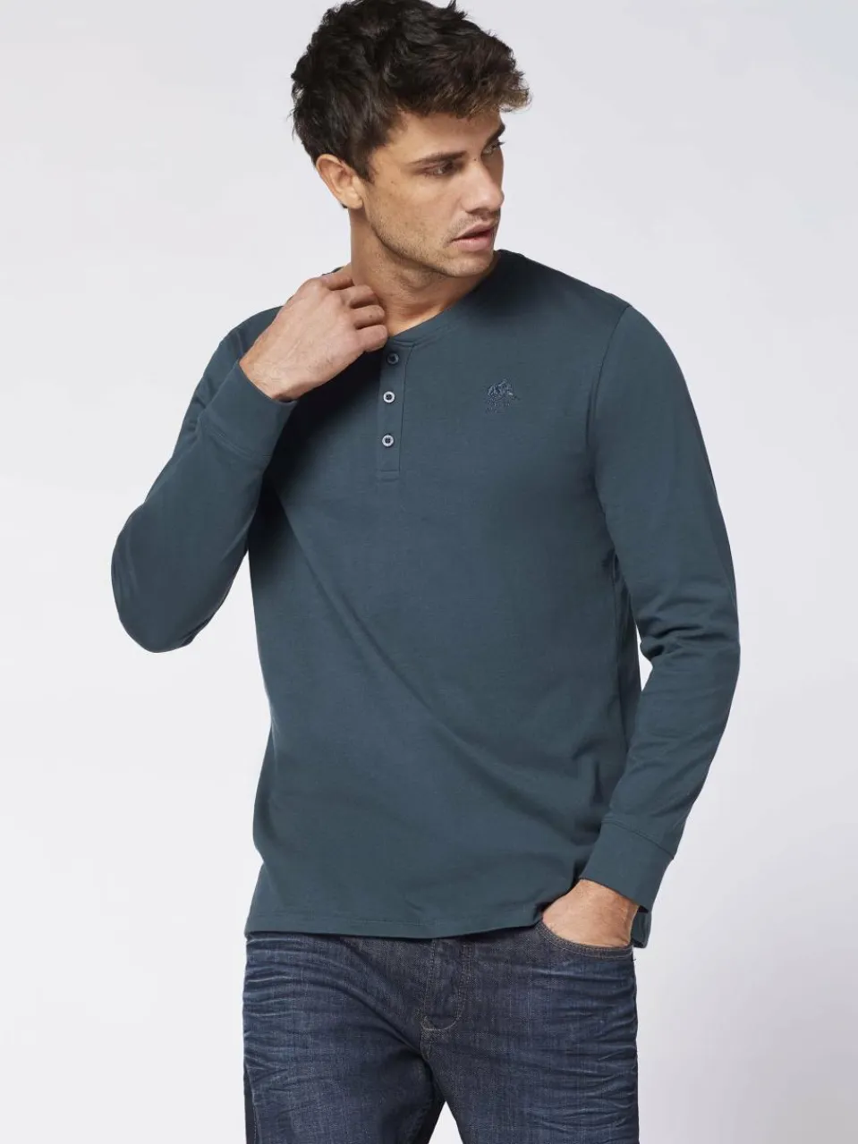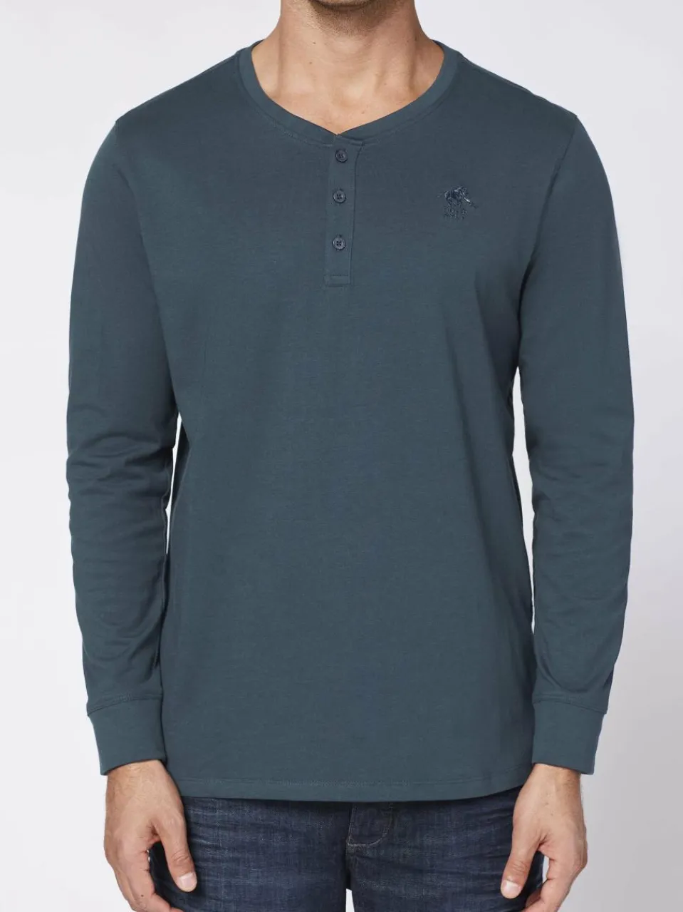 Vielseitiges Day-to-Day Essential: Das lässig geschnittene POLO SYLT Langarmshirt ist im cleanen Henley-Design mit 3-Knopfleiste gehalten und bildet eine unkomplizierte Styling-Grundlage für deine Freizeit-Looks. Es wird lediglich von dem ikonischen Label-Symbol in gestickter Poloreiter-Optik akzentuiert. Ob zu Jeans, Chino oder Shorts getragen – das Herren-Henley aus purer Baumwolle verströmt label-typischen POLO SYLT Charme.