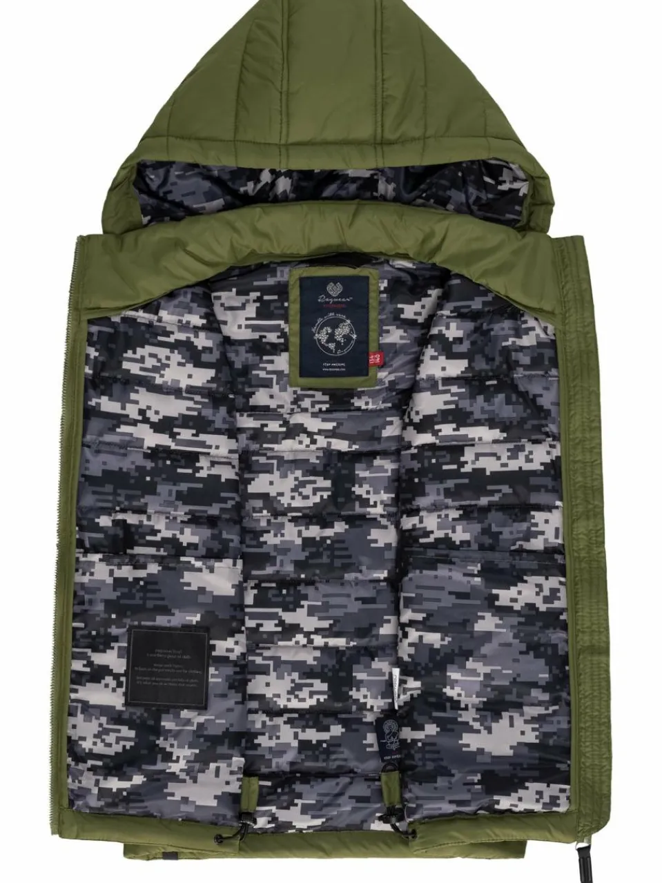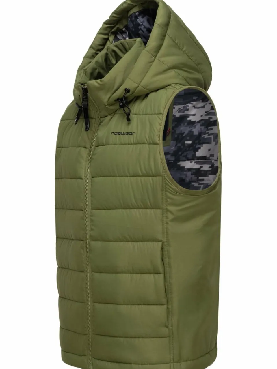 Stylische Jungen Outdoor-Weste mit abnehmbarer Kapuze und coolem Print-Innenfutter vom angesagten Streetwear Label Ragwear.