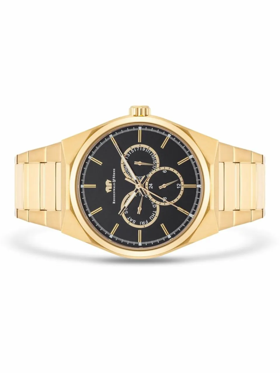 Sie sind auf der Suche nach einer Dress-Watch, die jedes Outfit aufwertet und mehr kann als ein herkömmlicher Zeitmesser? Dieses Multitalent der Manufaktur Rhodenwald & Söhne vereint Funktionalität und Design. Das IP-vergoldete Edelstahlgehäuse mit einem perfekt abgestimmten Edelstahl-Gliederarmband bildet einen markanten Kontrast zum dunklen Zifferblatt und bringt die nötige Robustheit für Beruf und Freizeit mit.