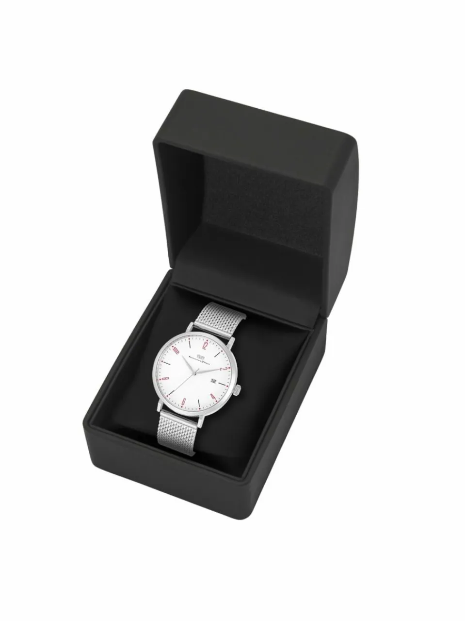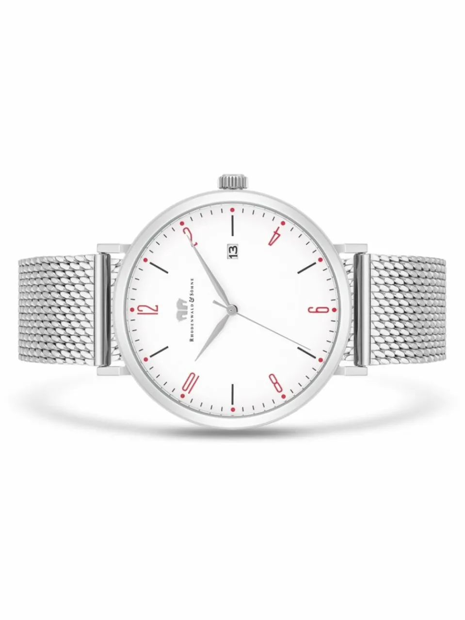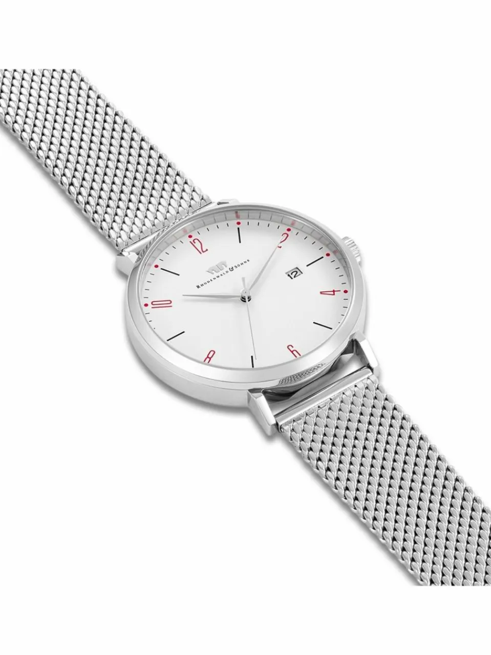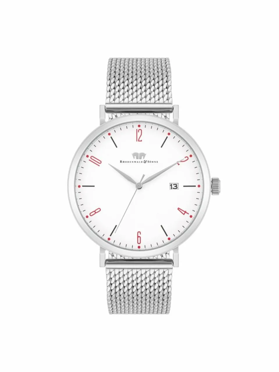 Eleganter Minimalismus inspiriert von den Werten traditioneller Uhrmacherkunst: Dieser Zeitmesser der Manufaktur Rhodenwald & Söhne ist ein exklusives Accessoire für anspruchsvolle Männer. Das puristische Zifferblatt beschränkt sich auf schlanke arabische Ziffern im Wechsel mit Strichindices, eine dezente Minuterie und eine Datumsanzeige. Das kühl schimmernde Edelstahlgehäuse bildet einen harmonischen Abschluss für das Zifferblatt, stimmig fortgesetzt durch ein filigranes Milanaise-Armband.