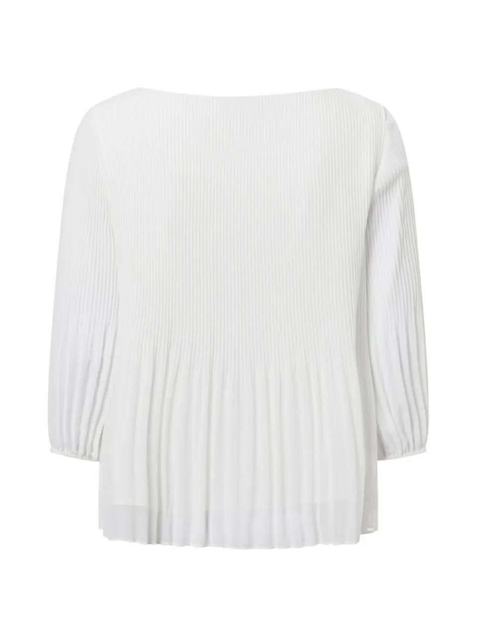 Das s.Oliver BLACK LABEL Plissee-Blusenshirt aus hochwertiger Kunstfaserqualität vereint stilvolles Design mit einem eleganten Fall – perfekt für sowohl freizeitliche als auch festliche Anlässe.
