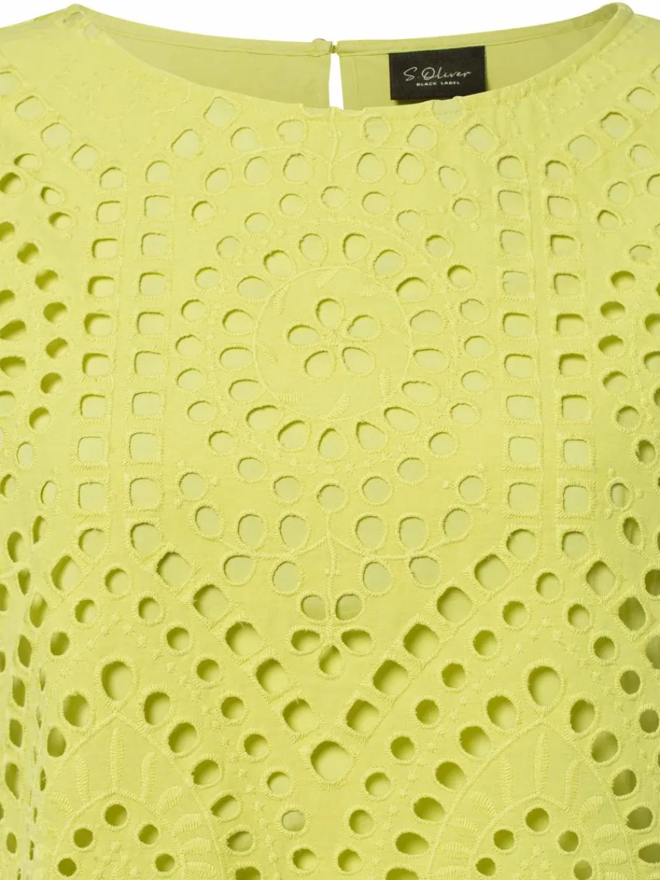 Das Sommer-Blusenshirt von s.Oliver kombiniert ein luftiges Baumwoll-Lochmuster mit einem softem Viskose-Futter und bietet damit eine gelungene Mischung aus Leichtigkeit und Komfort.