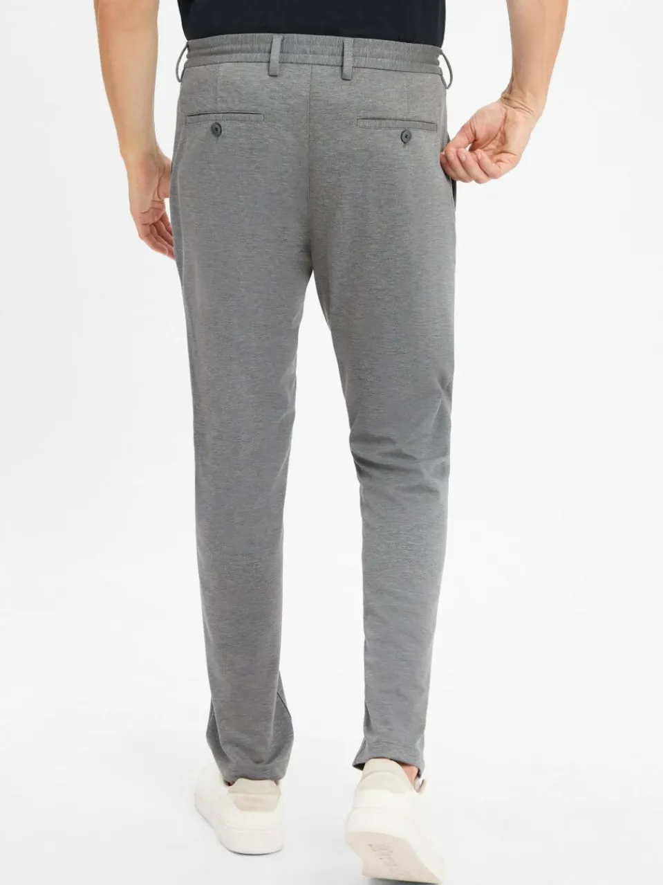 Zwischen casual und smart: Die Jog Pants von s.Oliver Black Label verbinden den Tragekomfort einer Sweatpants mit dem Appeal einer Businesshose. Die Hose ist Teil eines Baukasten-Anzugs, kann aber auch allein getragen werden.
