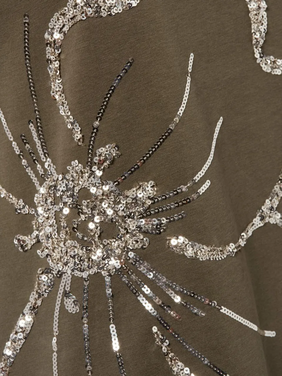Das florale Motiv aus Pailletten schenkt dem lockeren boxy Jerseyshirt von s.Oliver BLACK LABEL ein funkelndes Upgrade.