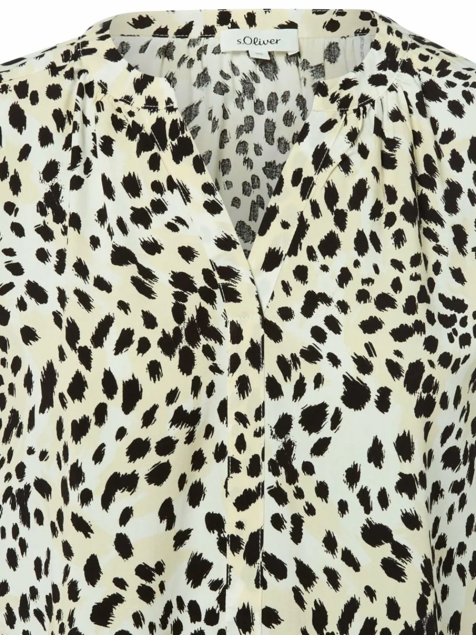 Das s.Oliver Blusenshirt fällt angenehm locker und begeistert zudem mit seiner fließenden Viskose-Qualität – ein echtes Wohlfühl-Piece.