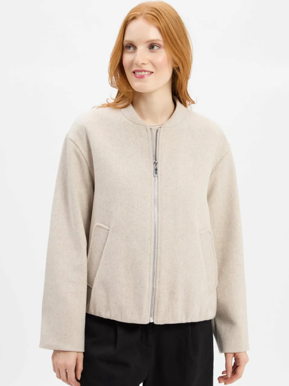 Easy Everyday-Piece: Der wollene Blouson von s.Oliver punktet in einem sanften Melange-Look mit typischem Collegekragen, einem markanten Zipper und zwei Eingrifftaschen.