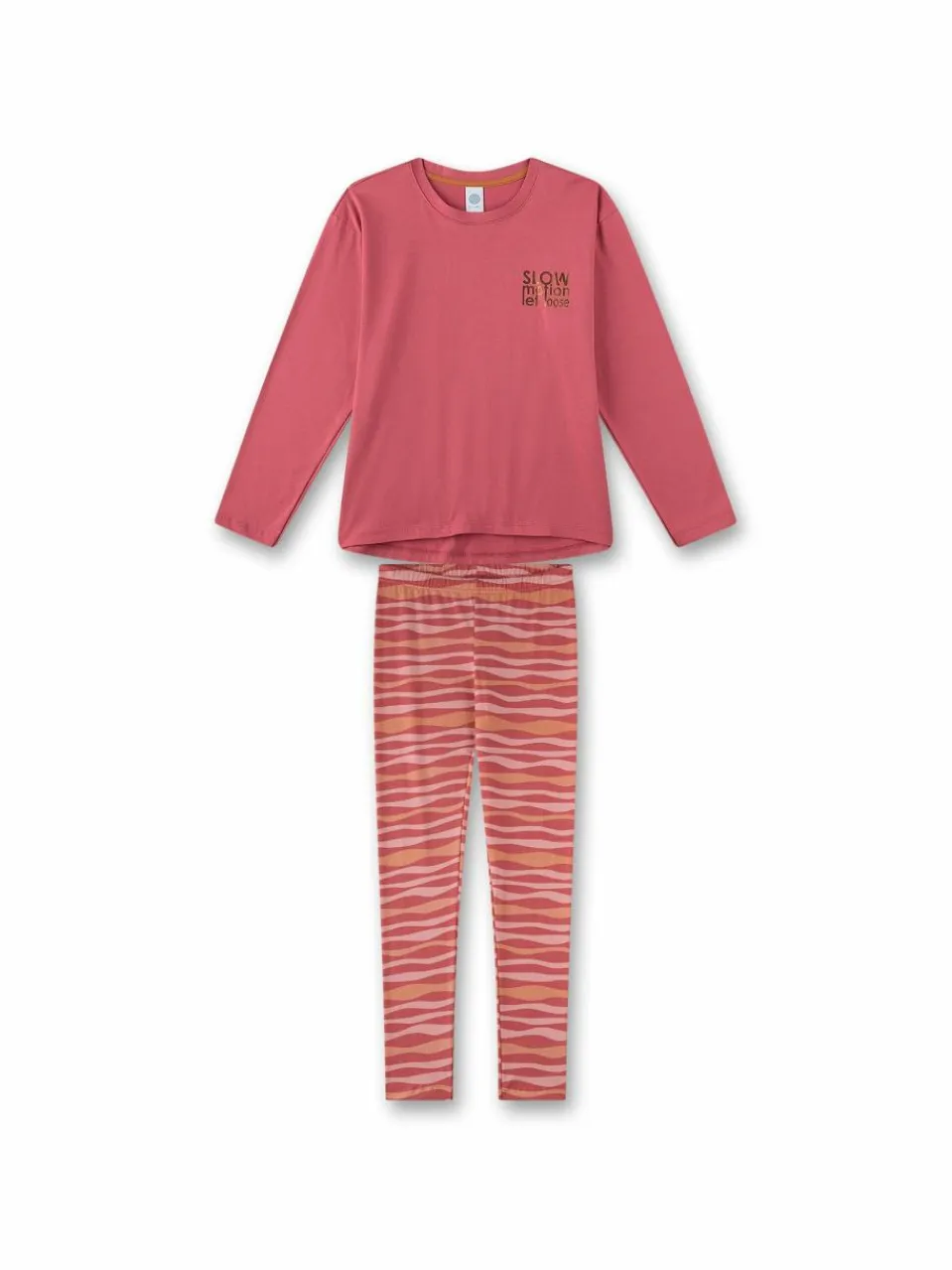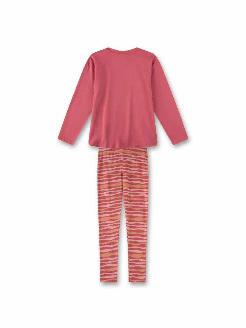 Pyjama-Set für Mädchen von der Marke Sanetta. Langarm-Oberteil und lange, gemusterte Hose, elastischer Bund, Motiv-Print, reine Baumwolle.