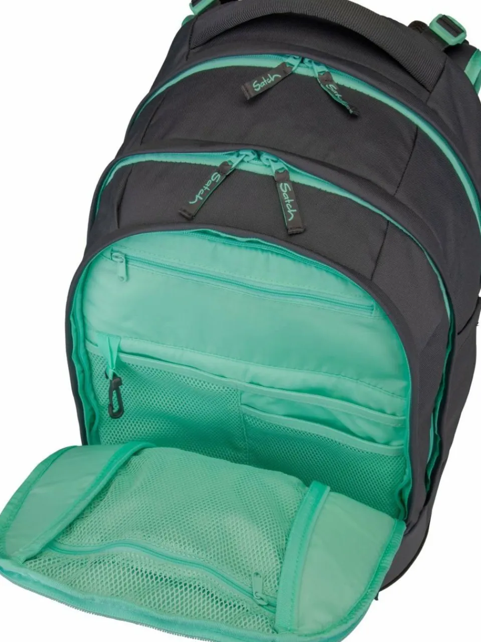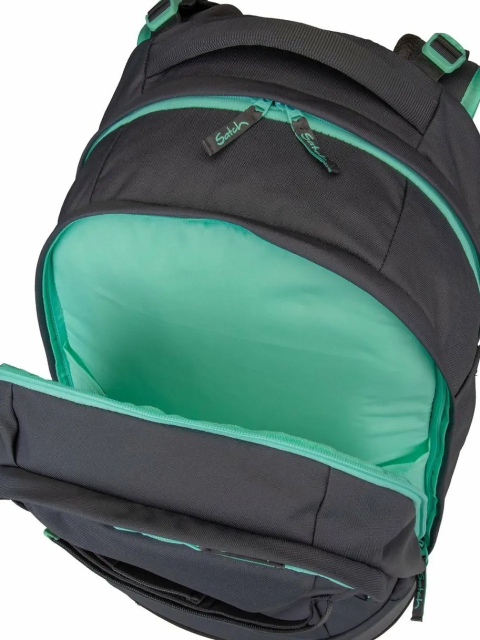 Schulranzen von satch ab Klasse 5, aus recyceltem Polyester und mit optimalem Rückensystem. Er bietet hohen Tragekomfort, ein gepolstertes Laptopfach und Befestigungsstreifen (Swaps).