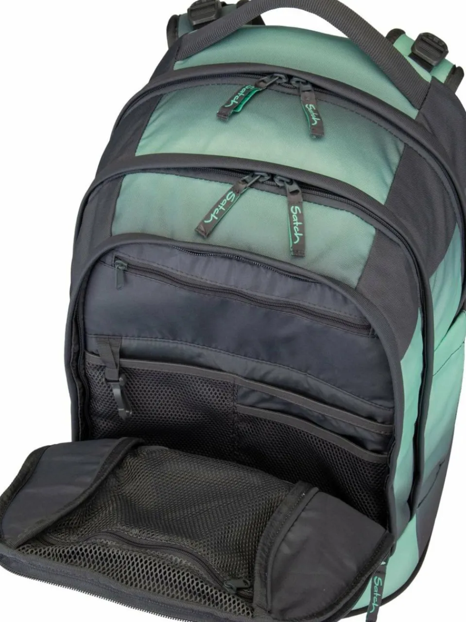 Schulranzen von satch ab Klasse 5, aus recyceltem Polyester und mit optimalem Rückensystem. Er bietet hohen Tragekomfort, ein gepolstertes Laptopfach und Befestigungsstreifen (Swaps).