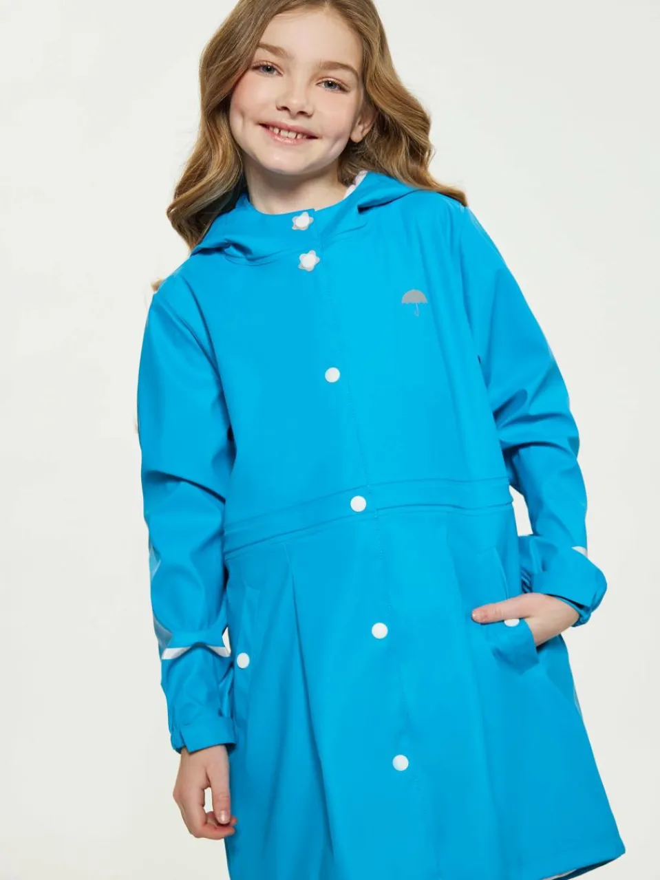Perfect for young adventurers, this kids‘ adjustable long sleeve raincoat is an essential item for outdoor escapades. Featuring a hood and full-length popper fastening, it provides protection from the elements. Reflective stripes on the sleeves keep you visible in low light conditions, and welded seams help keep water out. With pockets for storing treasures and a logo on the chest, this kids‘ coat combines style with functionality. This outdoor coat with welded seams made of 3000 mm thick waterproof material, keeps children dry and comfortable on rainy days. The girlish cut will certainly appeal to fashion lovers. This product is part of the Kids Collection.
