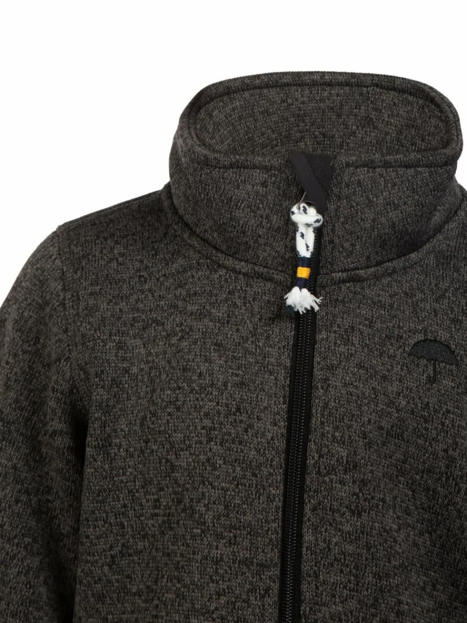 Perfekt für den Übergang. Die beliebten weichen Strickfleecejacken von Schmuddelwedda gibt es jetzt auch für Kids. Sie verfügen über eine feste, aber weichen Außenseite, einen hohen Stehkragen mit Kinnschutz und über eine wärmende, sehr soft Fleece-Innenseite. Dabei sind sie robust, waschbar und neben aller Funktionalität auch optisch ein Highlight. Auf der Brust ist der typische Schmuddelwedda Regenschirm gestickt und auch am Oberarm und auf der Rückseite befinden sich aufwendige Logo-Stickereien.