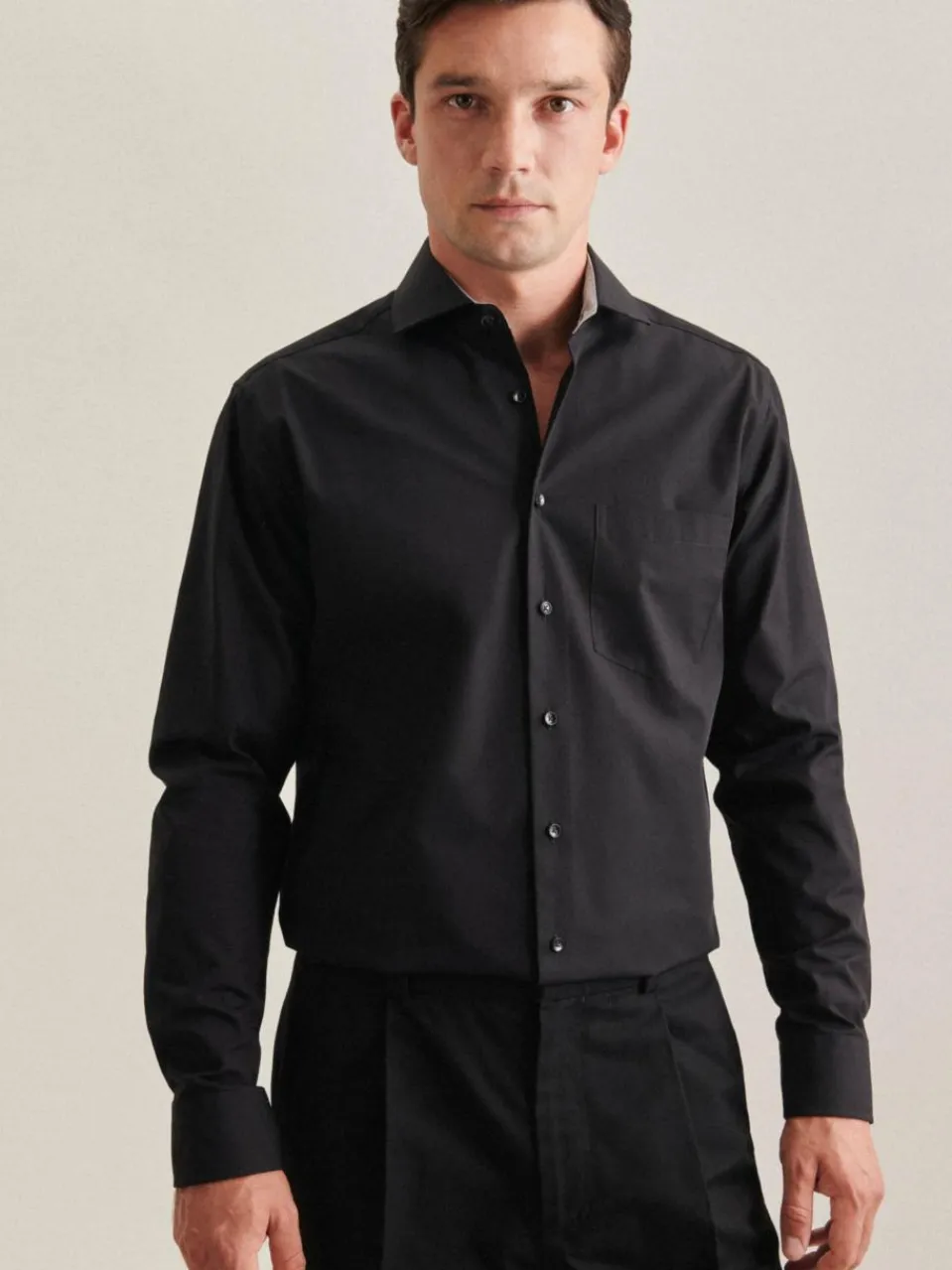 Seidensticker Hemden<Herren Business Hemd – Regular 1/1 schwarz uni